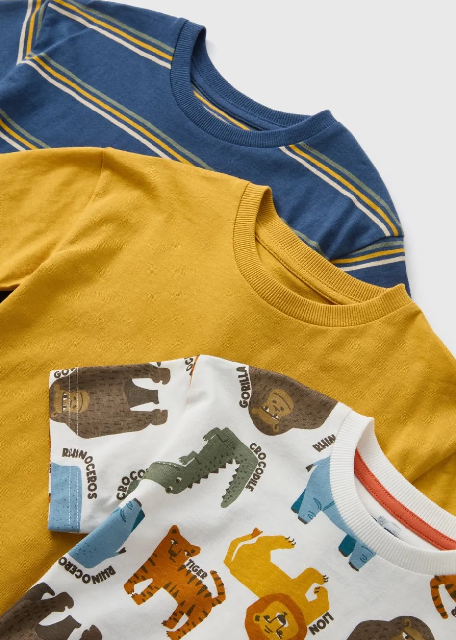 Fuel your little explorer’s imagination with the 3 Pack Boys Multicolour Safari T-Shirts. Featuring vibrant safari-themed designs, these t-shirts combine fun, comfort, and durability, making them a perfect choice for adventurous days. Each t-shirt showcases unique safari-themed prints, including animals and nature motifs, in a variety of bright and playful colours.