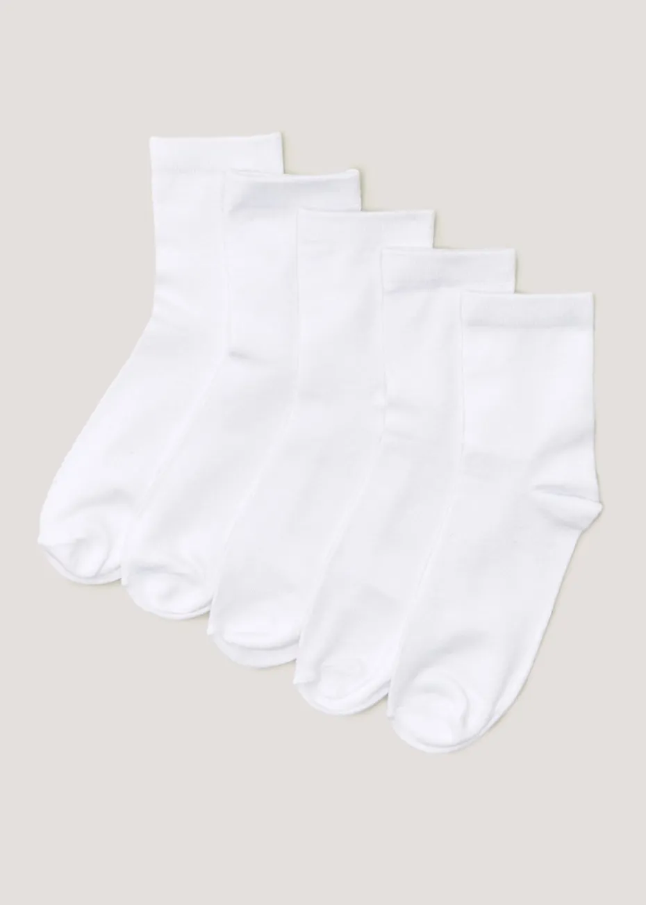Constructed with bamboo-derived viscose for maximum comfort and a super soft feel, these white ankle socks feature antibacterial properties to help keep your feet fresher for longer. Includes five pairs of socks. One size to fit women’s shoe sizes 4-8.