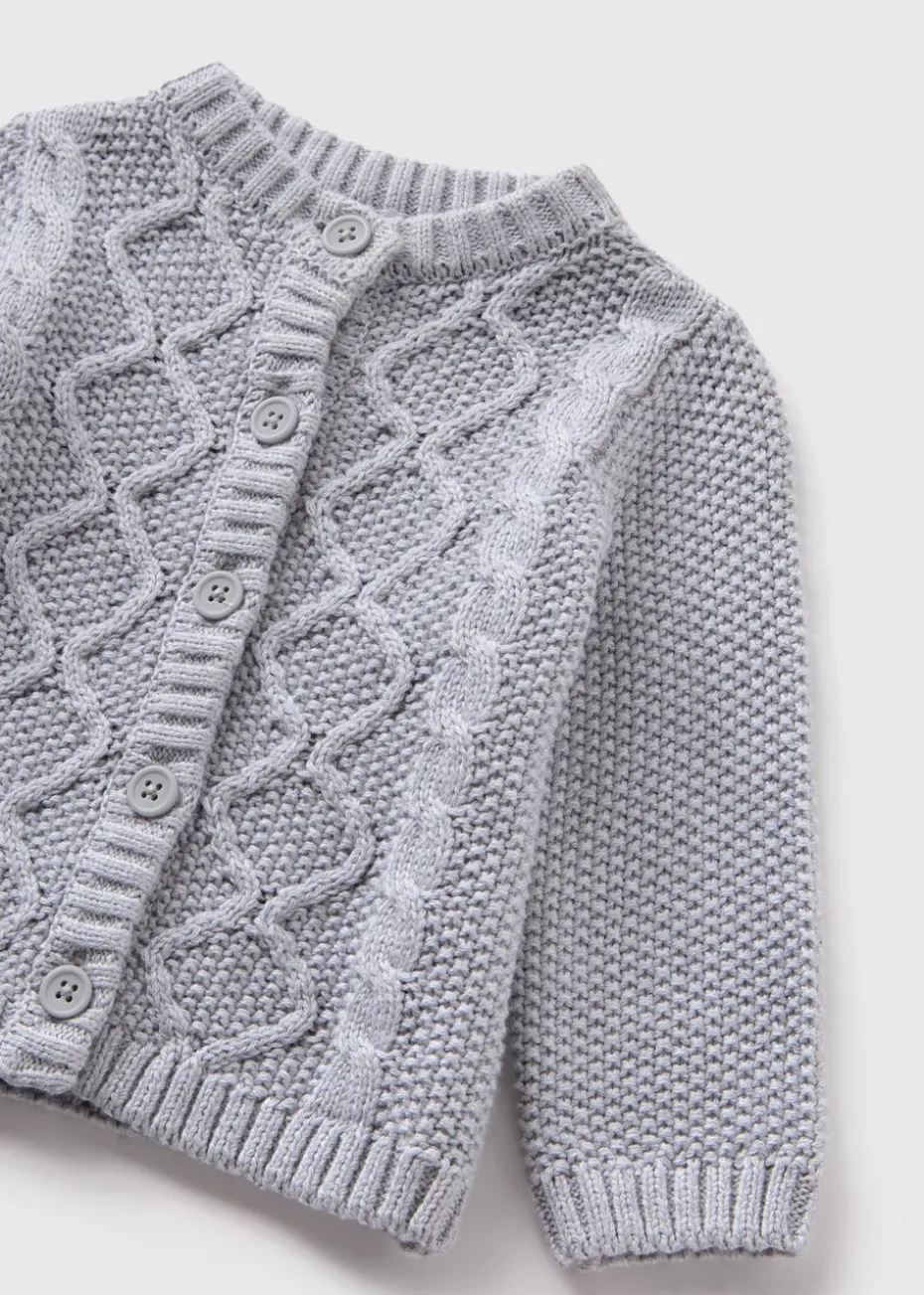 Our classic cable knit cardigan in a soft and cosy grey is the perfect layering piece for any outfit. With its timeless design, it will become a staple in your little one’s wardrobe. The cardigan is crafted from a high-quality 100% cotton that is gentle on your child’s skin. Featuring a classic cable knit pattern, this piece adds texture and interest to any outfit.