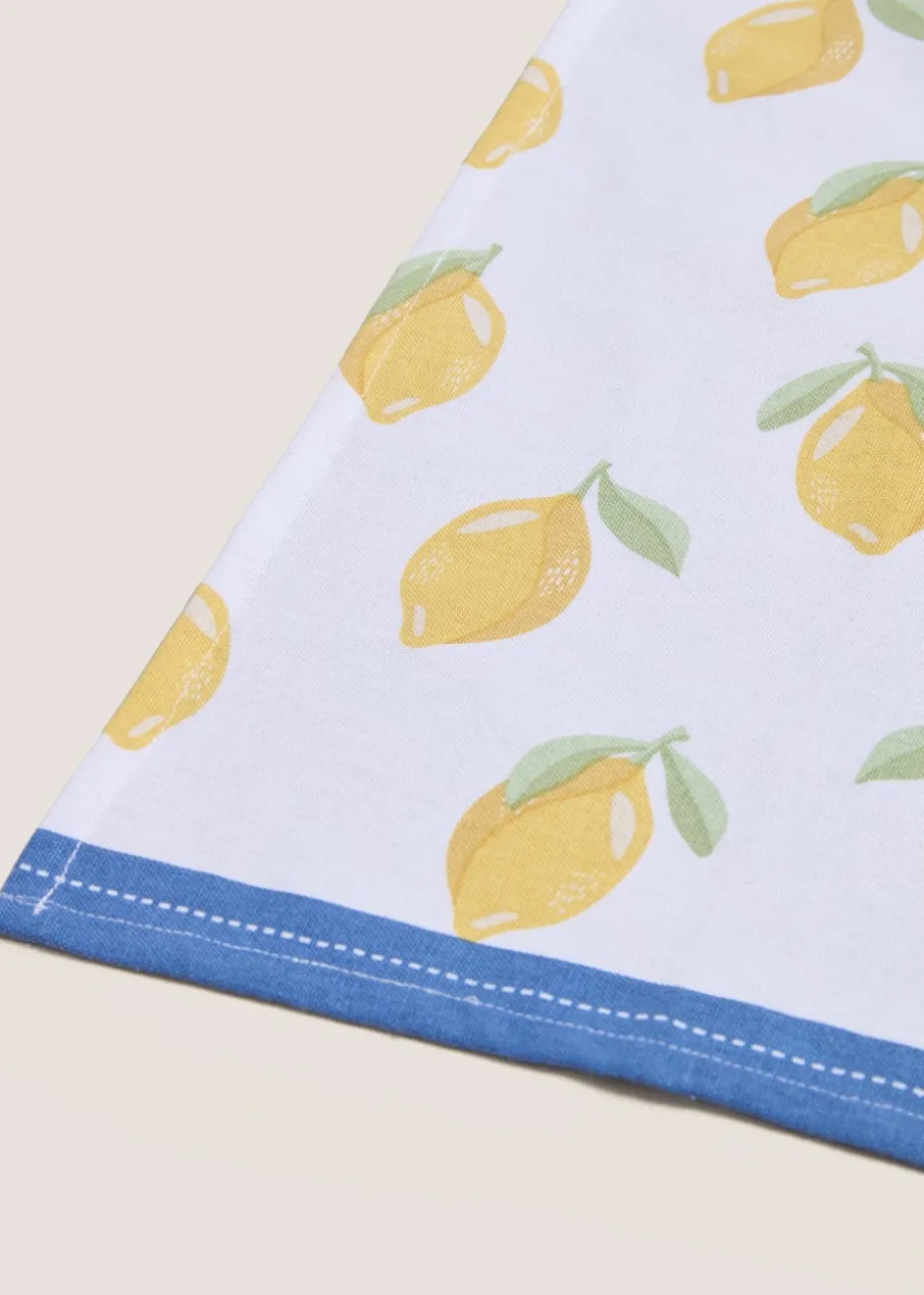 Blue and Yellow Lemon Printed Tea Towels