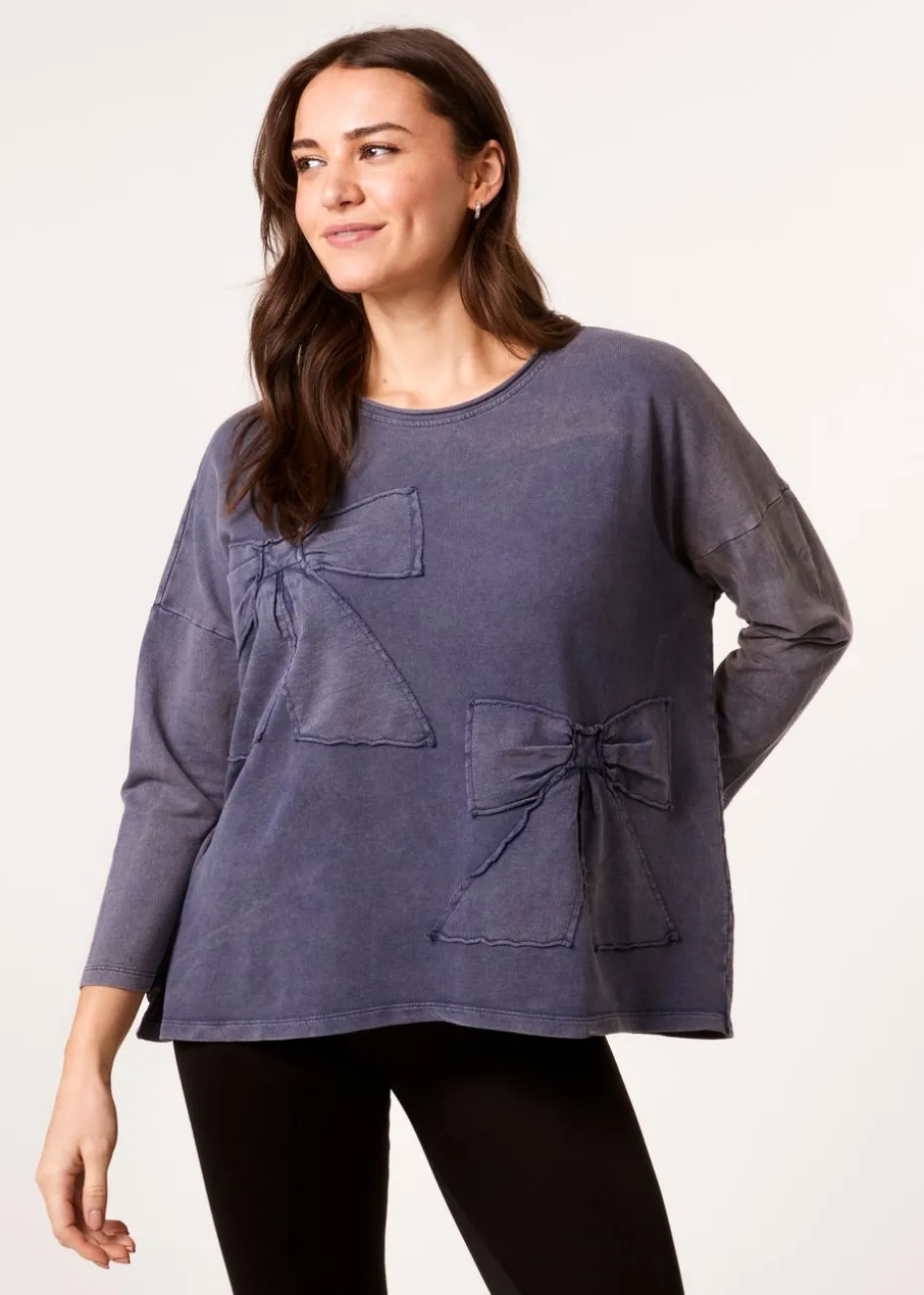 A cute layering option for spring. Team this soft bow detailed jumper with jeans and trainers, a perfect outfit for walking the dog and doing the school drop off.