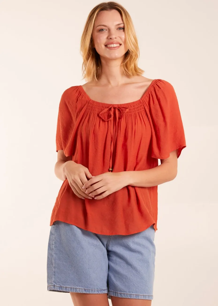 Be the first to review “Blue Vanilla Orange Shirred At Front Swing Top” Cancel reply