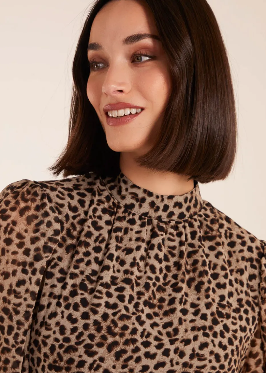 Blue Vanilla Tan High Neck Wrap Midi Dress