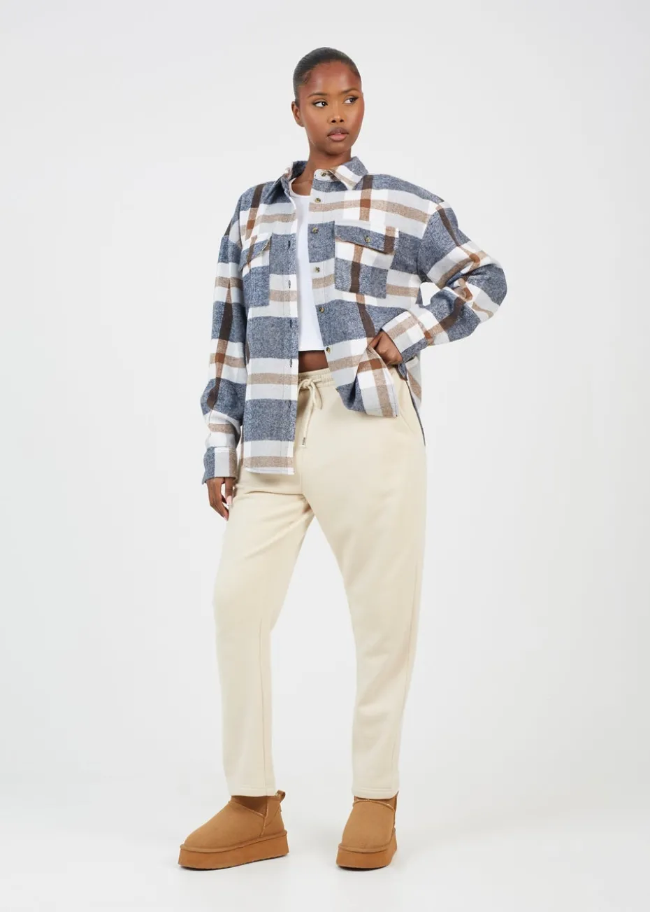 Brave Soul Brown Check Print Long Sleeve Fleece Shirt