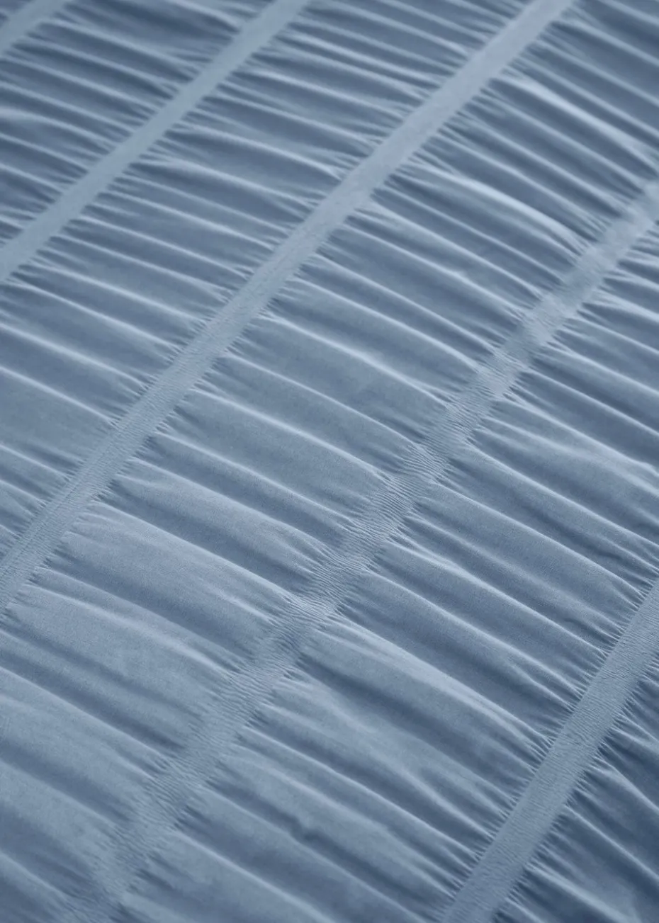 Refresh your room with this classic texture, this banded seersucker stripe bedlinen with a lustrous shine combines contemporary living with classic styling. Created from easy-care recycled polyester and soft cotton, blended for everyday use. Catherine Lansfield is renowned for style and quality – designed and developed in Great Britain. Ethically sourced overseas and made to quality and human-ecological safety standards, in accordance with STANDARD 100 by OEKO-TEX®.