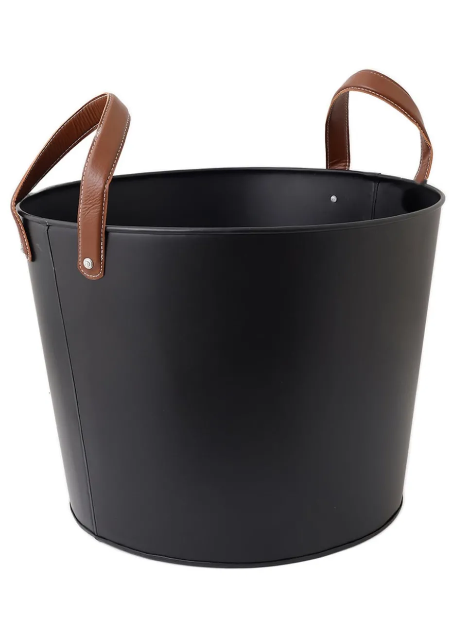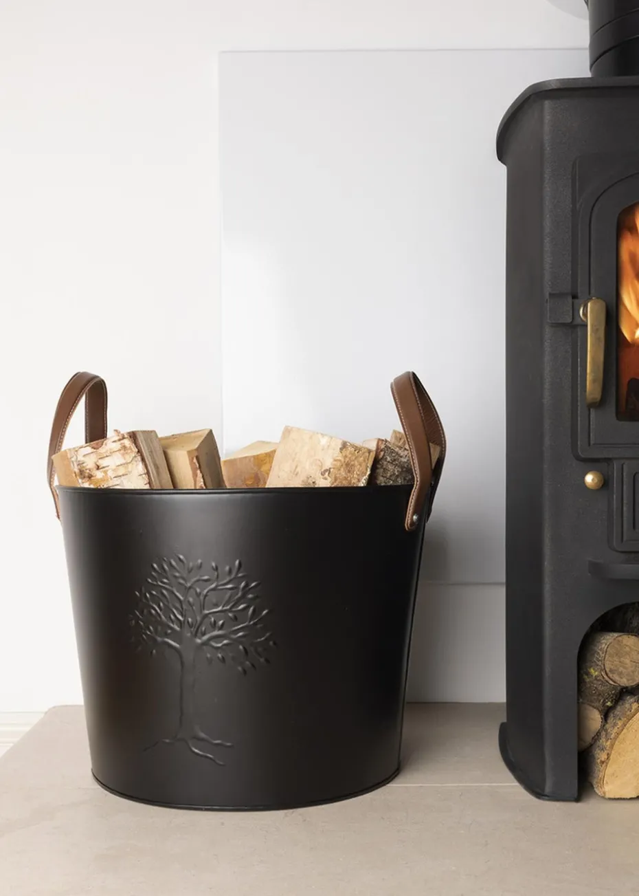 This large log bucket, with a capacity of up to 6kg, combines practicality with timeless style. Featuring elegant leather handles, a sleek black matte finish, and a refined “Tree” embossed logo design, this bucket is the perfect fireside accessory. Its classic appearance not only enhances the look of your fireplace area but also provides a functional solution for storing and transporting firewood. Stylish and practical, this log bucket will seamlessly complement any fireside setting. Please Note: Warning: This product will get hot if placed in front or close to an open fire. Please allow to cool, or use protective gloves before handling. Never leave children or pets unsupervised in a room with a lit fire or hot material. A blazing fire should never be left unattended. Care Instructions: This product is best maintained by wiping occasionally with a soft cloth. Do not use any abrasive cleaners. For indoor use only. Features: Timeless style Contrasting colour handles Tree embossed logo design Can hold up to 6kg of logs Includes: 1x Large wood bucket Materials: Iron Leather Dimensions: Height: 31cm Length: 36cm Width: 35cm Weights: 2.6kg Colours: Black