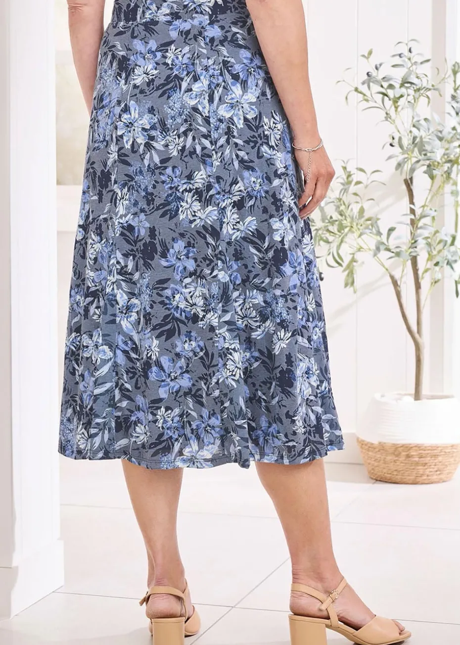 Cotton Traders Dark Blue Burnout Jersey Pull-On Maxi Skirt