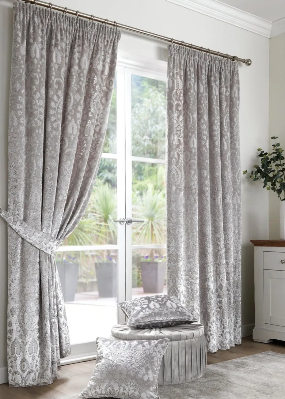 A beautifully designed damask pattern is woven into a sumptuously soft velvet fabric to sensational effect to create this gorgeous curtain from Curtina. The curtains are fully lined to help keep out light and heat in and are made with a 3″ pencil pleat heading tape.