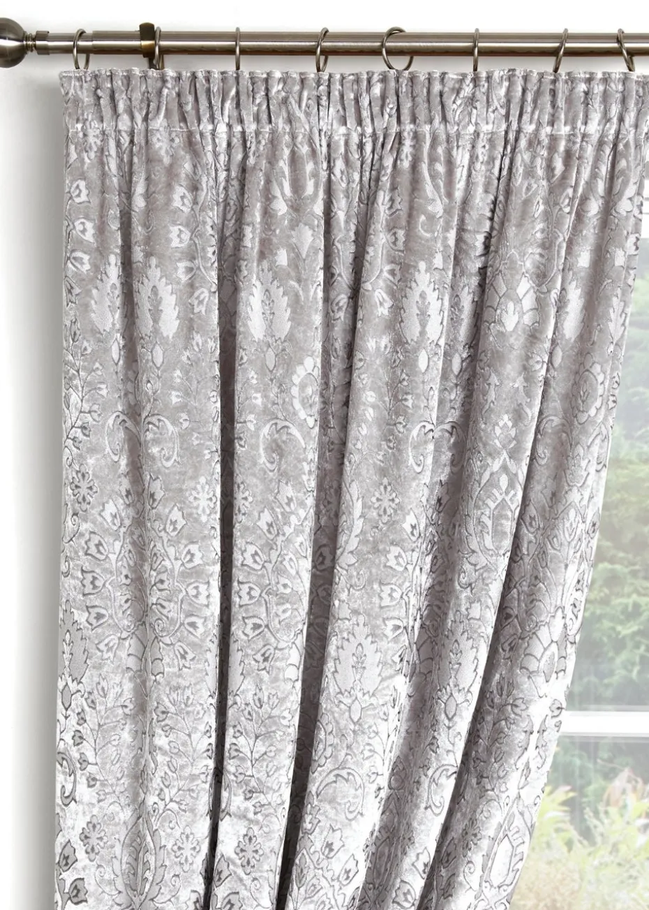 Curtina Trinity Velvet Silver Pencil Pleat Curtains