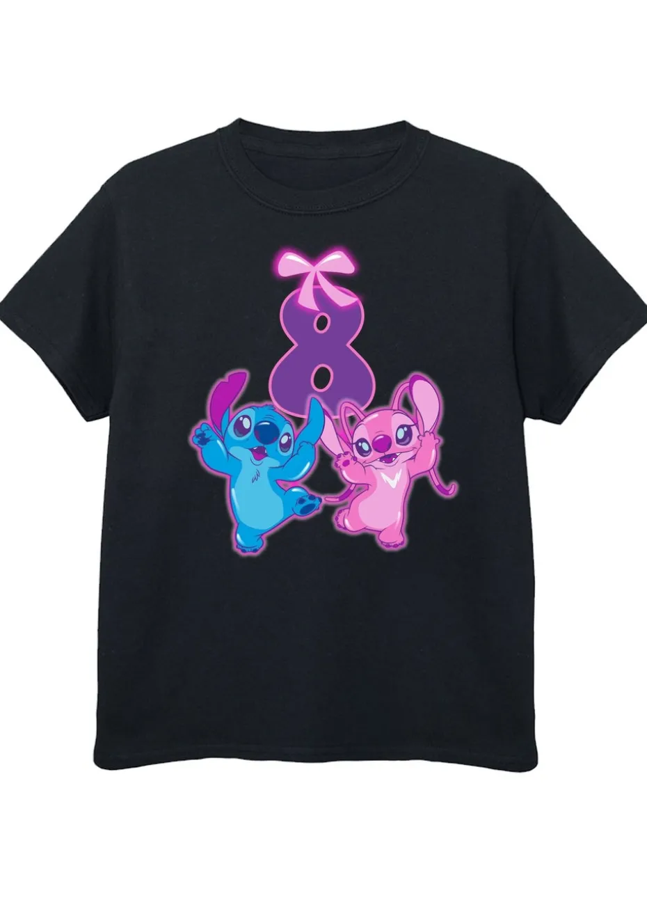 Disney Lilo & Stitch 8th Birthday KidsBlack Graphic T-Shirt (7-11 Years)