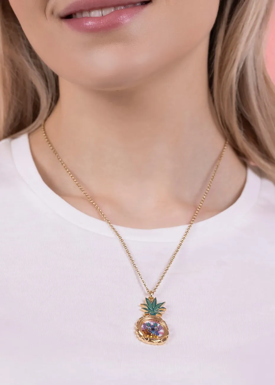 This official Disney Lilo & Stitch pendant is perfect for any Disney fan. Featuring a gold enamel pineapple pendant with floating stones and gold chain. Supplied in Disney packaging.