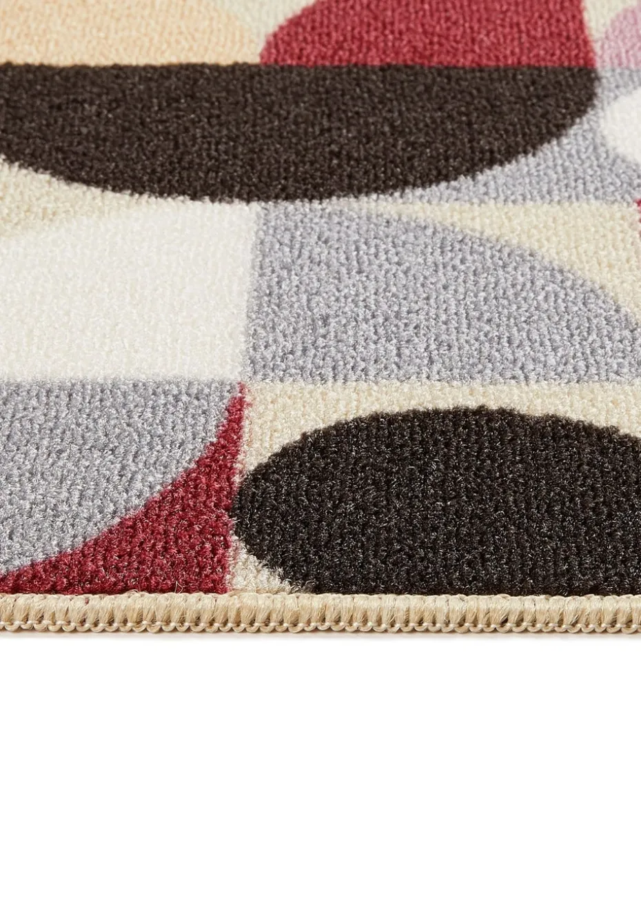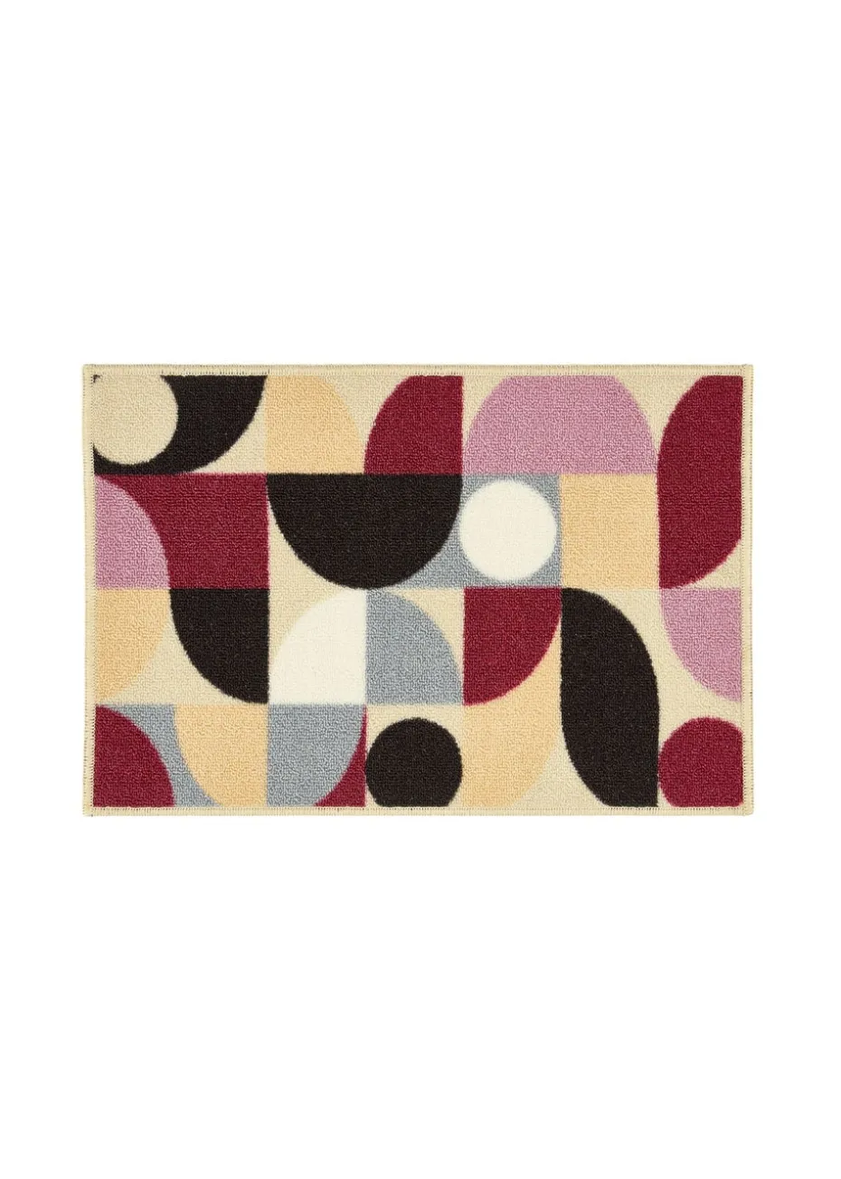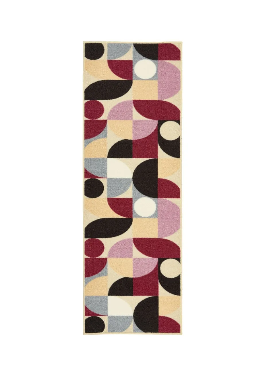 Purple Geo – Introducing our new Nylon Mat and Runner Set, hardwearing and washable, perfect for busy homes. Our Purple Geo design adds a touch of colour in a simple way, with circles and semi-circles in tones of blue, pink, and purple, on a beige background.
