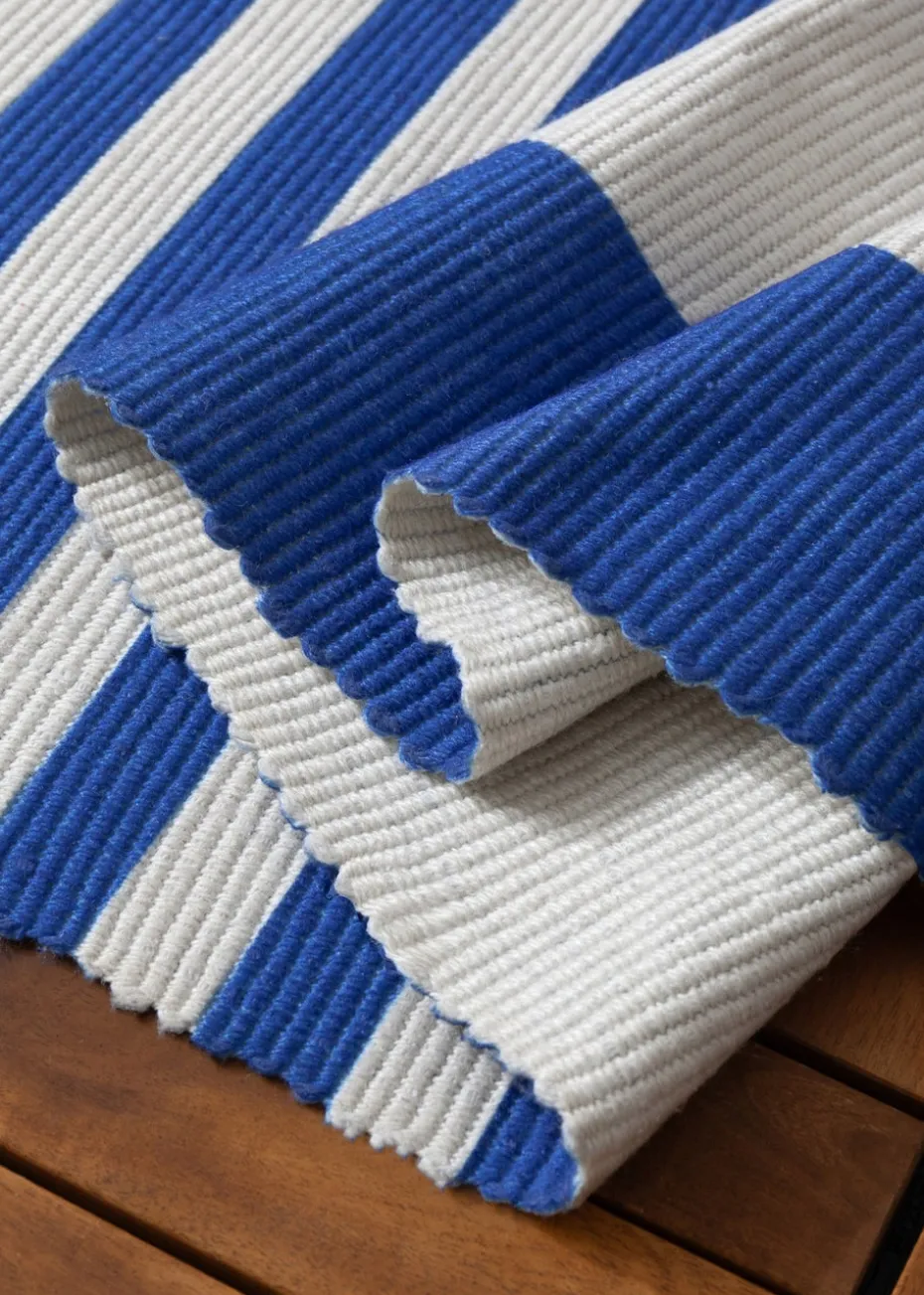 Elevate your indoor or outdoor space with the Deck Stripe Printed Rug, a perfect blend of style and practicality. Its dynamic stripe design, featuring contrasting directions and bold hues, adds a touch of energy and character to any setting, instantly making a statement. Designed for modern living, the lightweight, foldable structure allows for easy transport and versatility, whether enhancing your patio or dining area. This durable flatweave rug is crafted to withstand the elements, with weatherproof and UV-resistant qualities ensuring vibrancy and longevity, while its machine-washable design makes maintenance refreshingly simple.