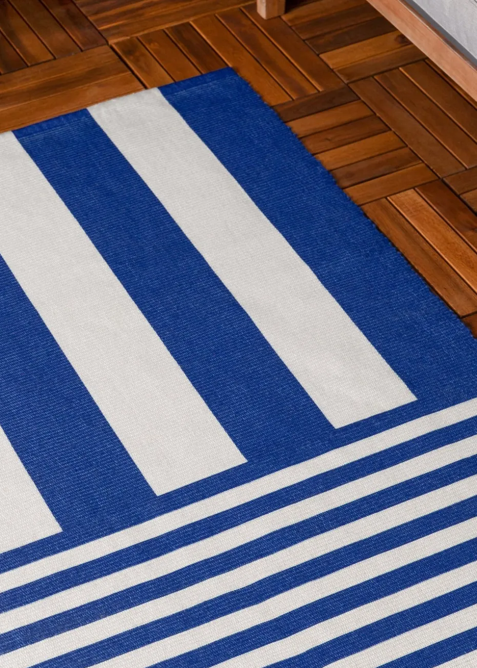 furn. Navy/White Deck Stripe Printed Indoor/Outdoor Rug