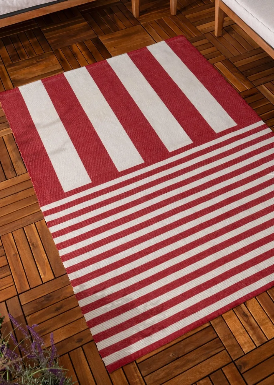 furn. Red Deck Stripe Printed Indoor/Outdoor Rug