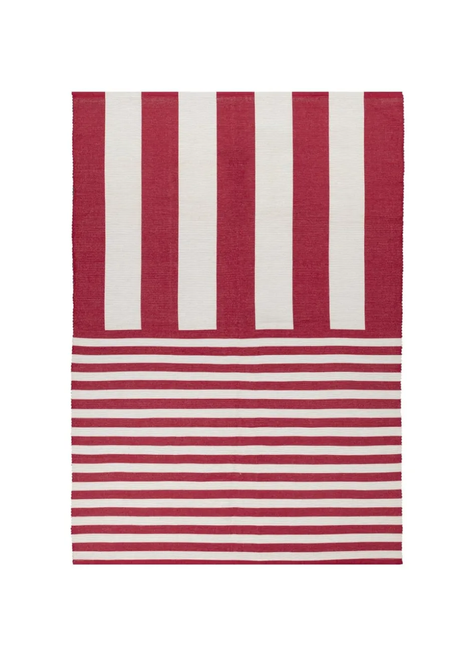 Elevate your indoor or outdoor space with the Deck Stripe Printed Rug, a perfect blend of style and practicality. Its dynamic stripe design, featuring contrasting directions and bold hues, adds a touch of energy and character to any setting, instantly making a statement. Designed for modern living, the lightweight, foldable structure allows for easy transport and versatility, whether enhancing your patio or dining area. This durable flatweave rug is crafted to withstand the elements, with weatherproof and UV-resistant qualities ensuring vibrancy and longevity, while its machine-washable design makes maintenance refreshingly simple.