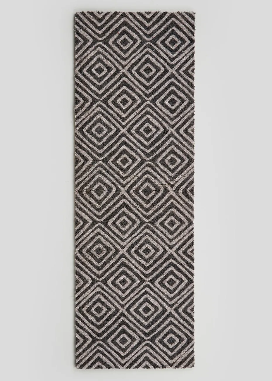 Great for sprucing up your home, this long muddle mat makes a chic style statement. In grey and white, it’s finished with a geometric print design.