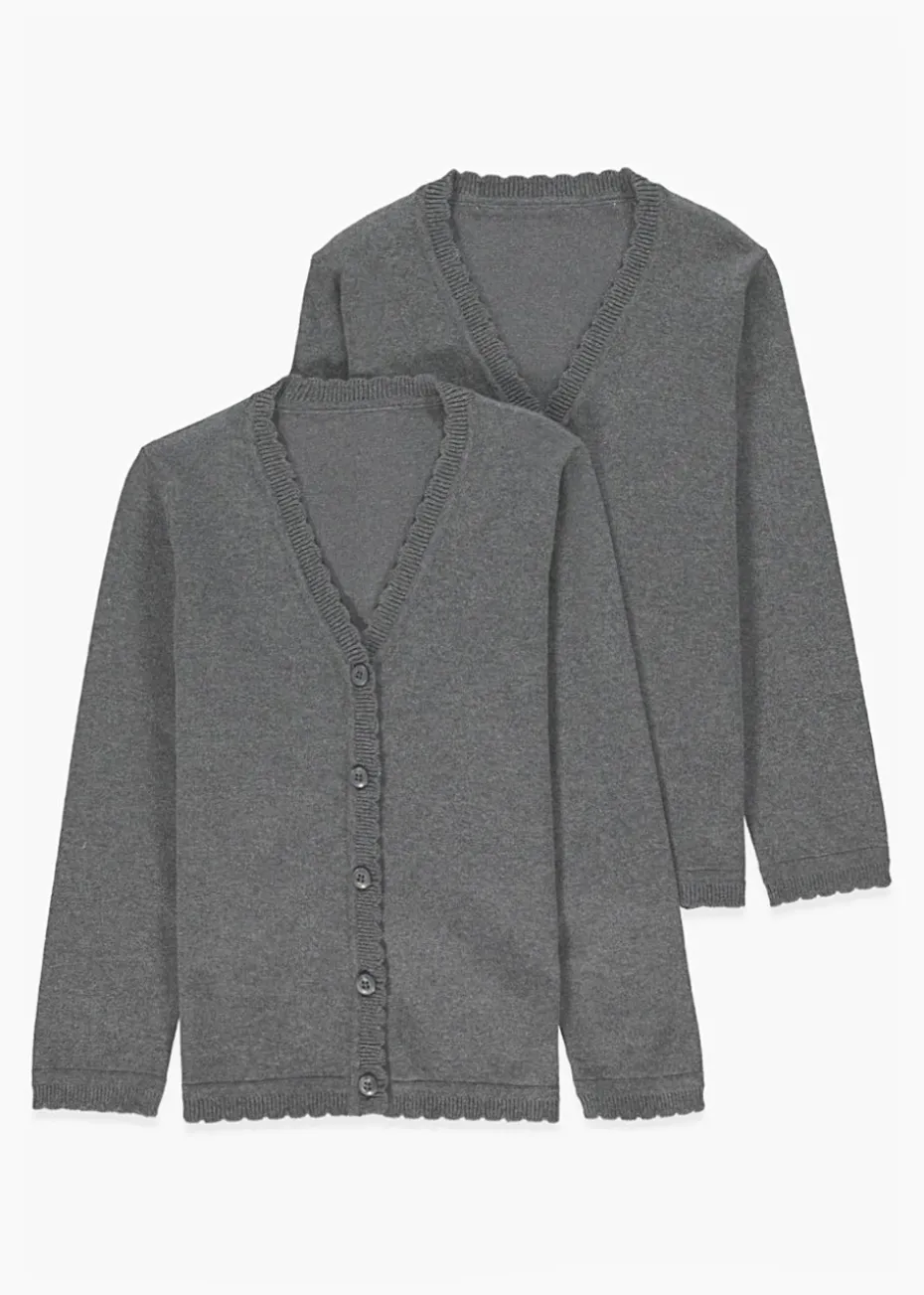 Stock up on her school staples with this pair of grey cardigans. Crafted with a soft cotton blend, these cardis are finished with lasting colour technology to ensure they won’t fade over time. A button fastening makes them easy to layer over her school blouses and shirts.