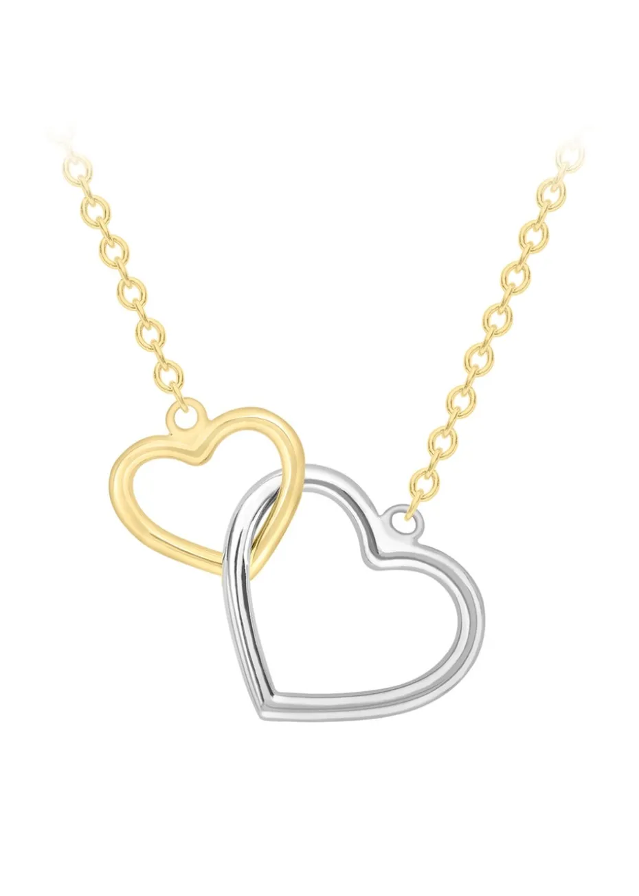The 9ct 2-Colour Gold Interlocked-Hearts Necklace is a stunning piece of jewellery that combines elegance and charm.