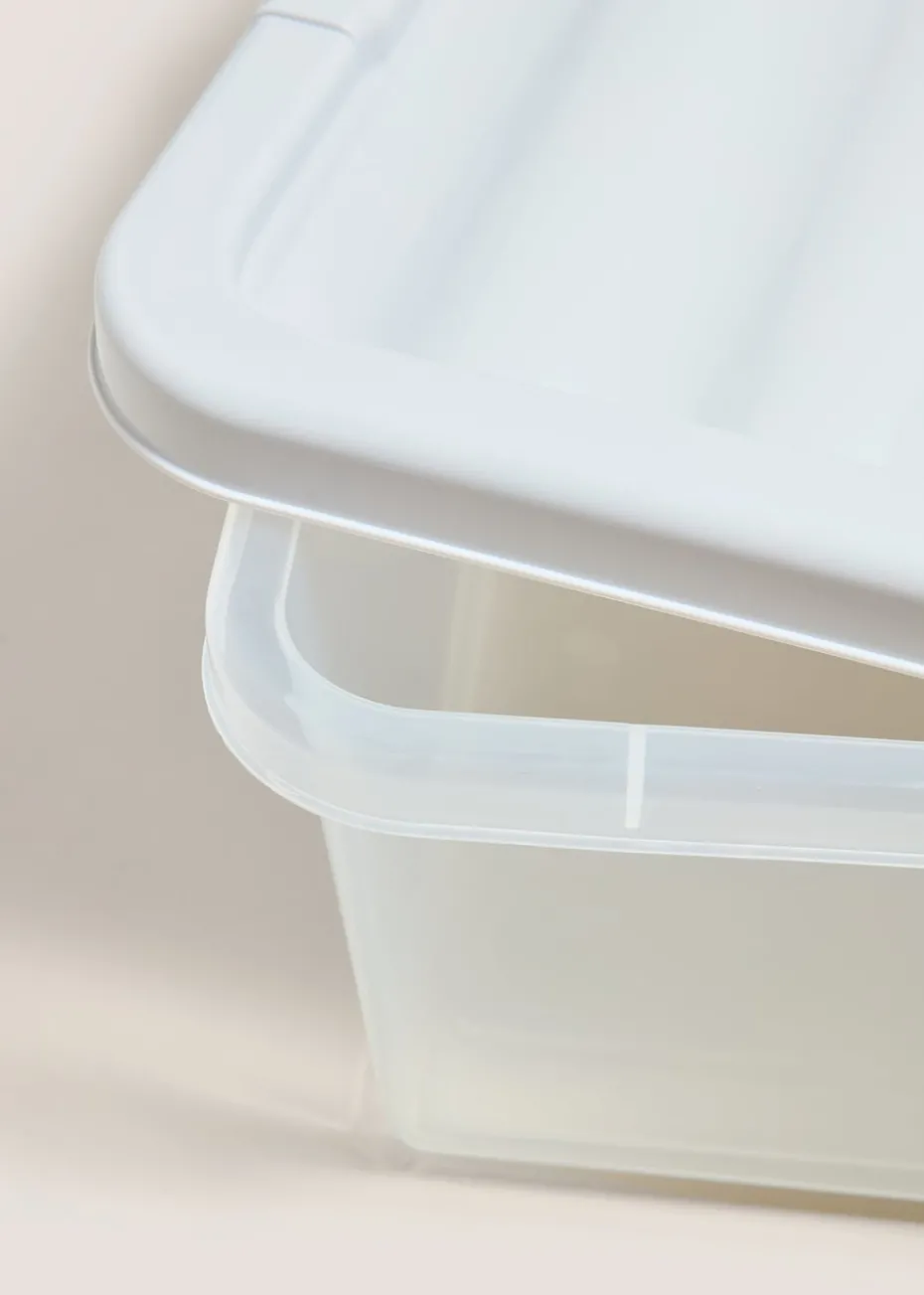 With a generous 42L capacity, this storage box is perfect for storing a variety of items, from clothes and bedding to toys and games. The perfect size to keep your belongings all together with a chic black lid to fit into your decor.