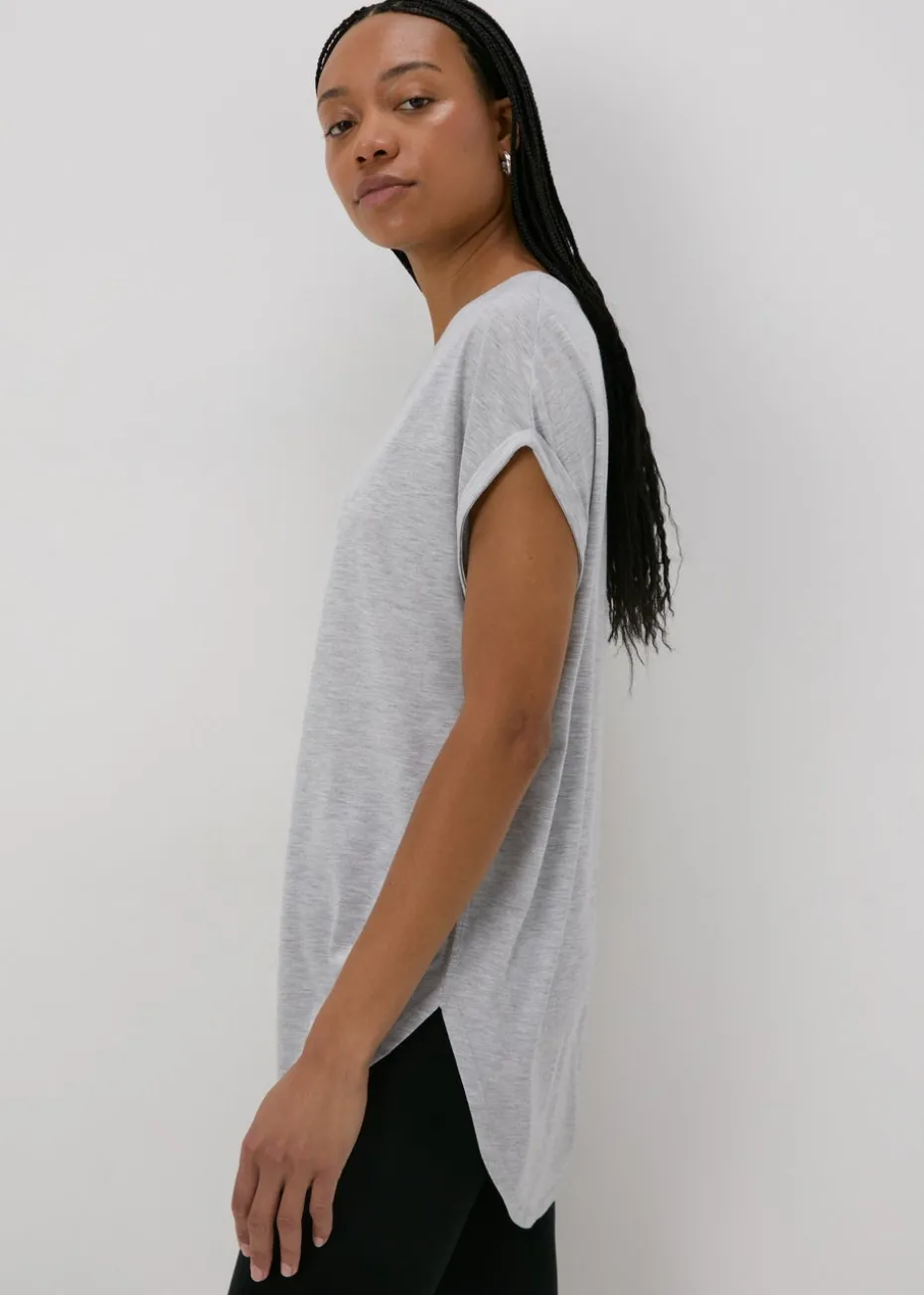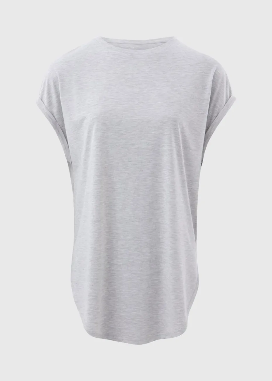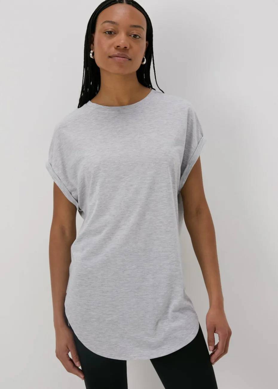 A timeless staple, our sleek Grey Longline T-Shirt elevates your casual wardrobe. Cut from soft cotton, it features a modern, elongated silhouette that flatters your form. The classic crew neckline and rounded hem adds effortless elegance, in a soft grey hue, making it a versatile foundation for layering or wearing alone. Pair it with your favourite jeans and trainers for a relaxed weekend look or dress it up with a skirt and heels for a more formal occasion.