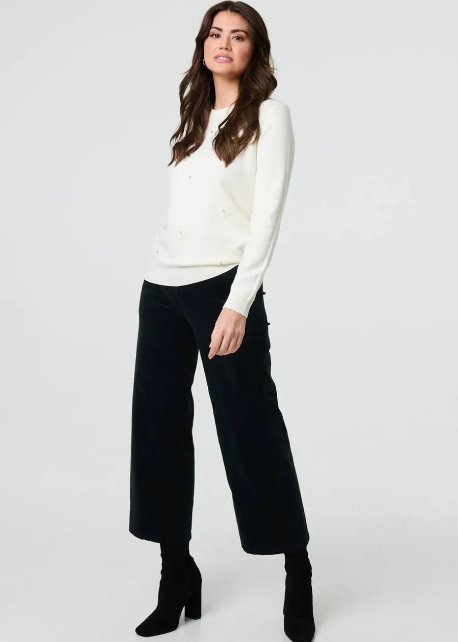 Izabel London White Floral Gemstone Embellished Jumper
