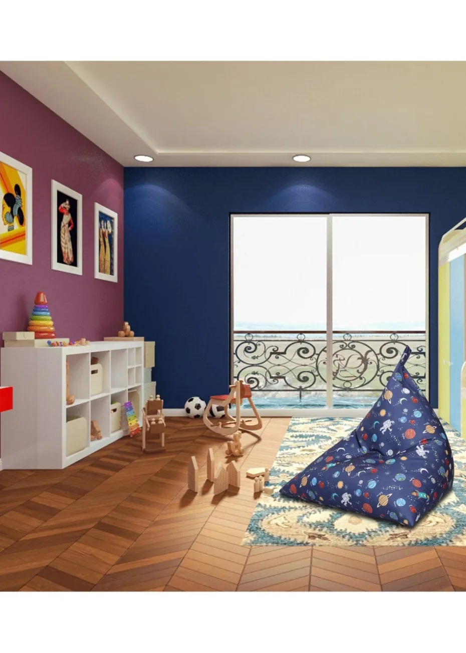 This big triangle bean bag in bright space design with planets and astronauts and outer space print makes a great addition to any home and kids room. The triangular shape gives you somewhere to rest your head, and the handy carry handle makes it easy to move around. Made from durable wipe-clean polyester, it comes ready filled with polystyrene beans so it’s ready to go in an instant. Our products are designed with kids in mind and are built to cope with everyday use. Tested to the latest safety regulations, they comply with British and European safety standards.