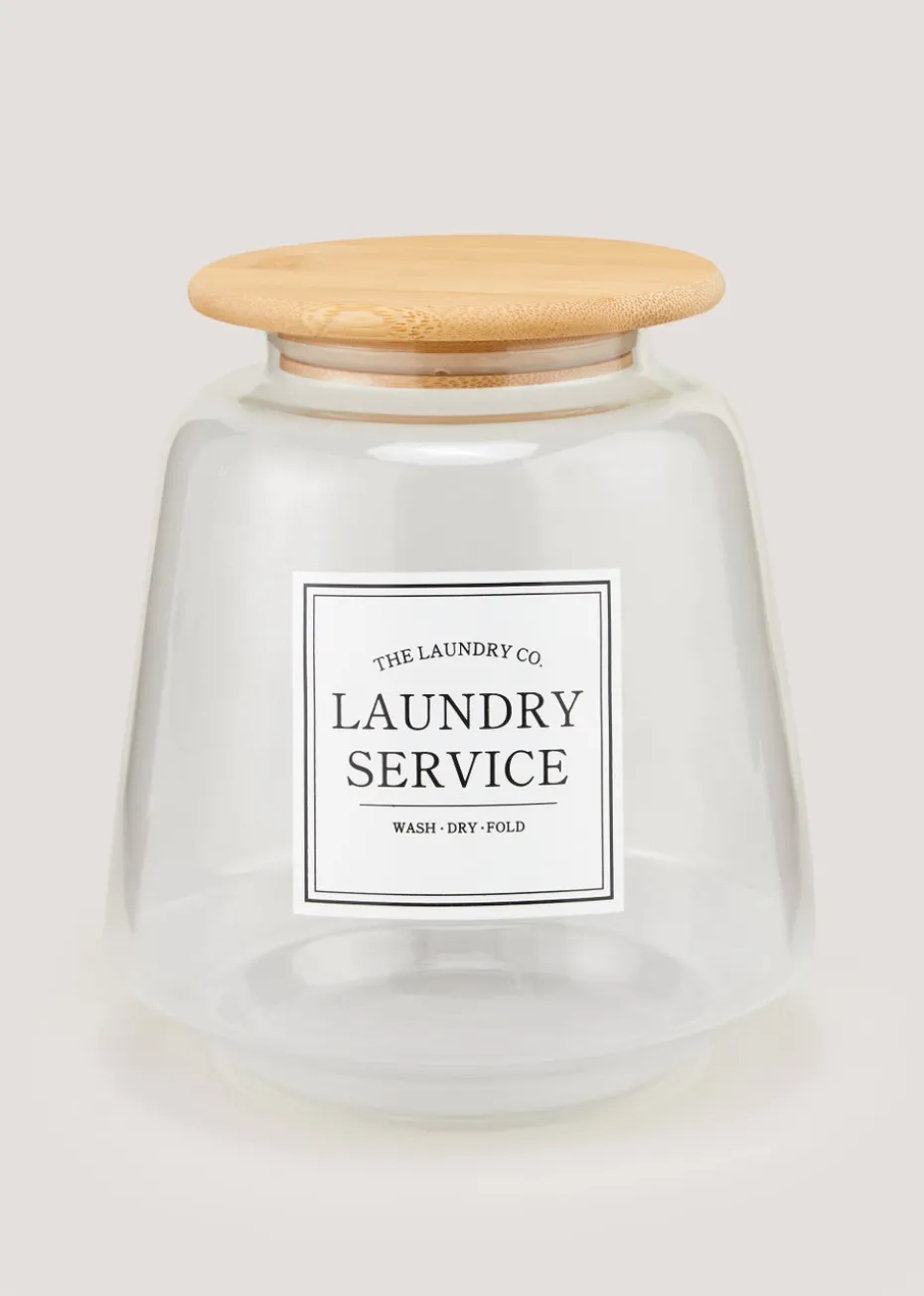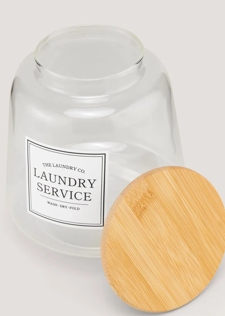 Keep your laundry essentials neat and tidy with this clear glass jar. Part of the Laundry Co range, the jar comes with a wooden lid for easy access.