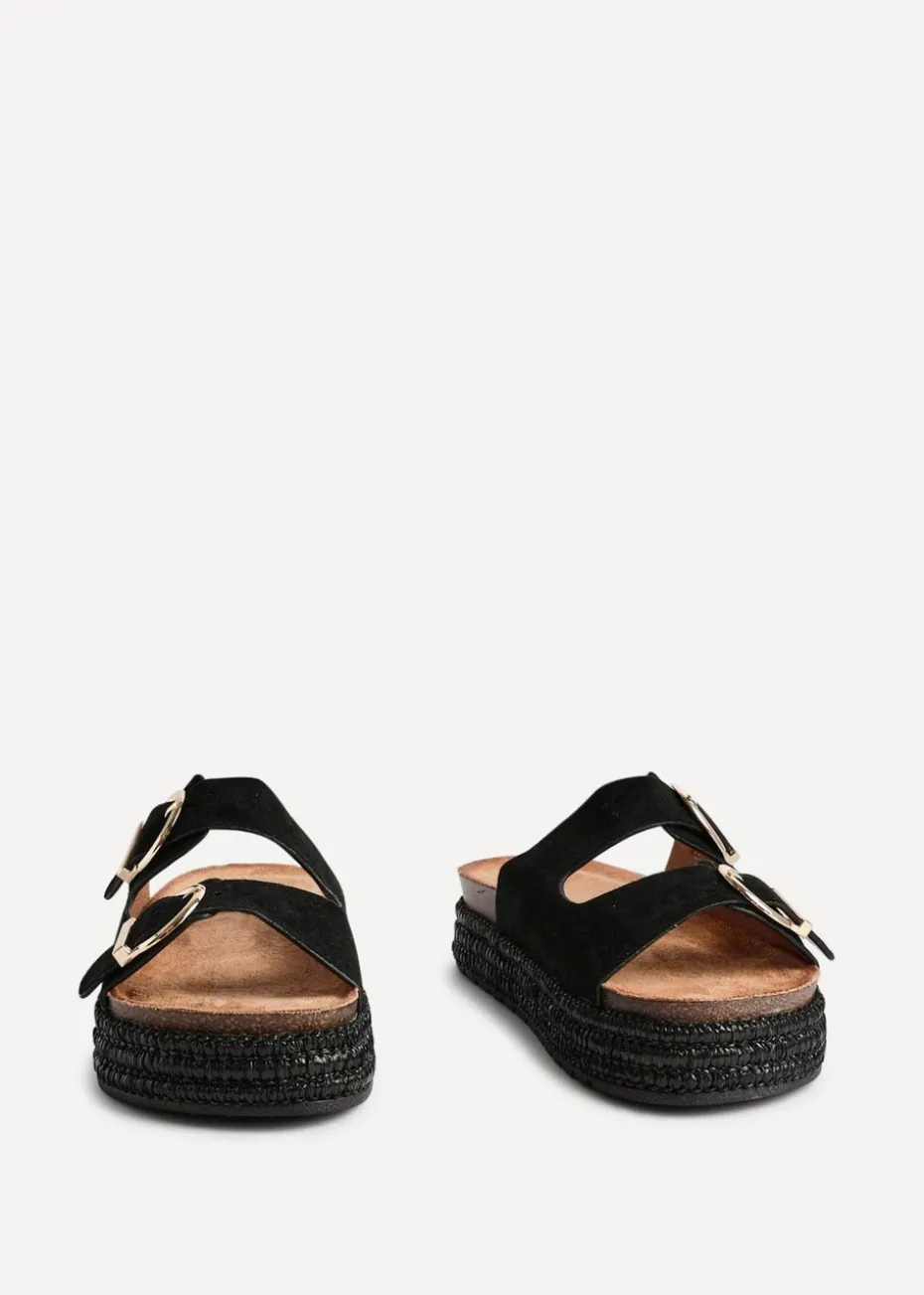 Be the first to review “Linzi Alabama Black Faux Suede Double Buckle Plaited Flatform Slider” Cancel reply