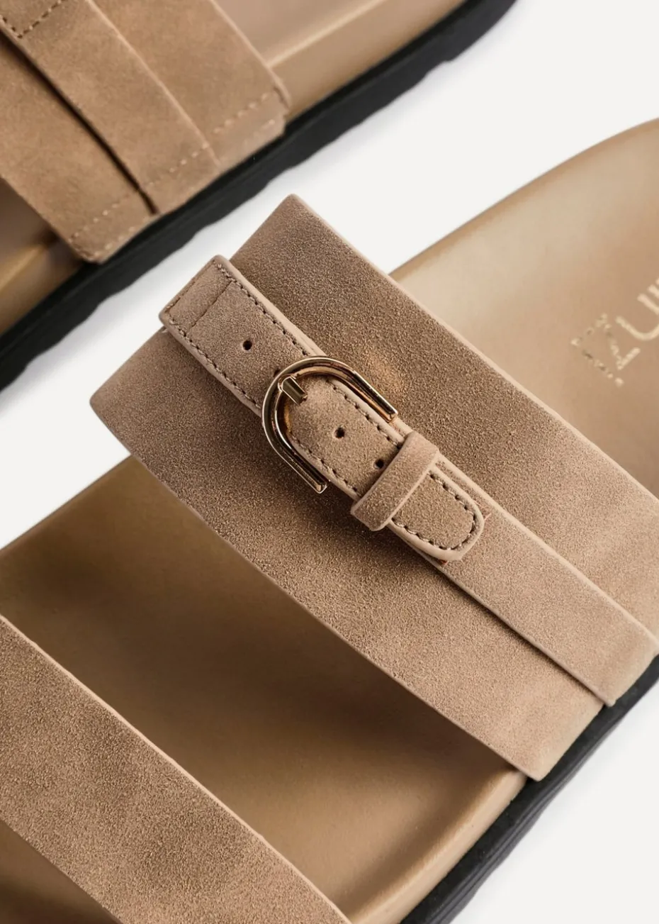 Be the first to review “Linzi Ezra Taupe Nubuck Flat Slider Sandals” Cancel reply
