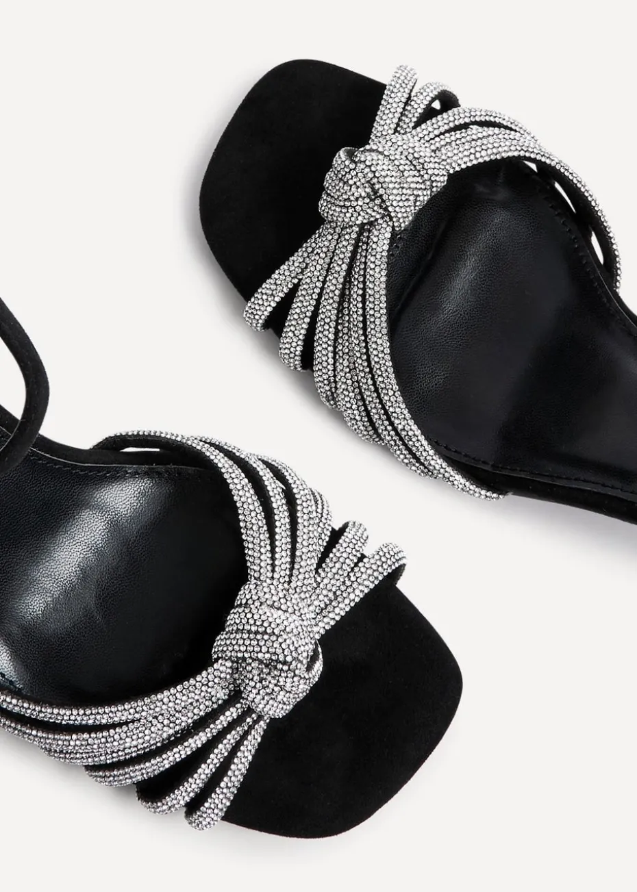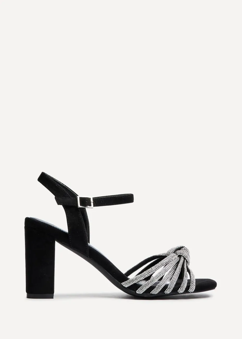 Upgrade your appearance with our Sanora Heels, boasting a sophisticated knotted diamante front strap. These versatile sandals blend comfort and style, thanks to their modest 8cm block heel and plush cushioned insock for all-night comfort. Effortlessly elevate your outfit with a subtle touch of sparkle..