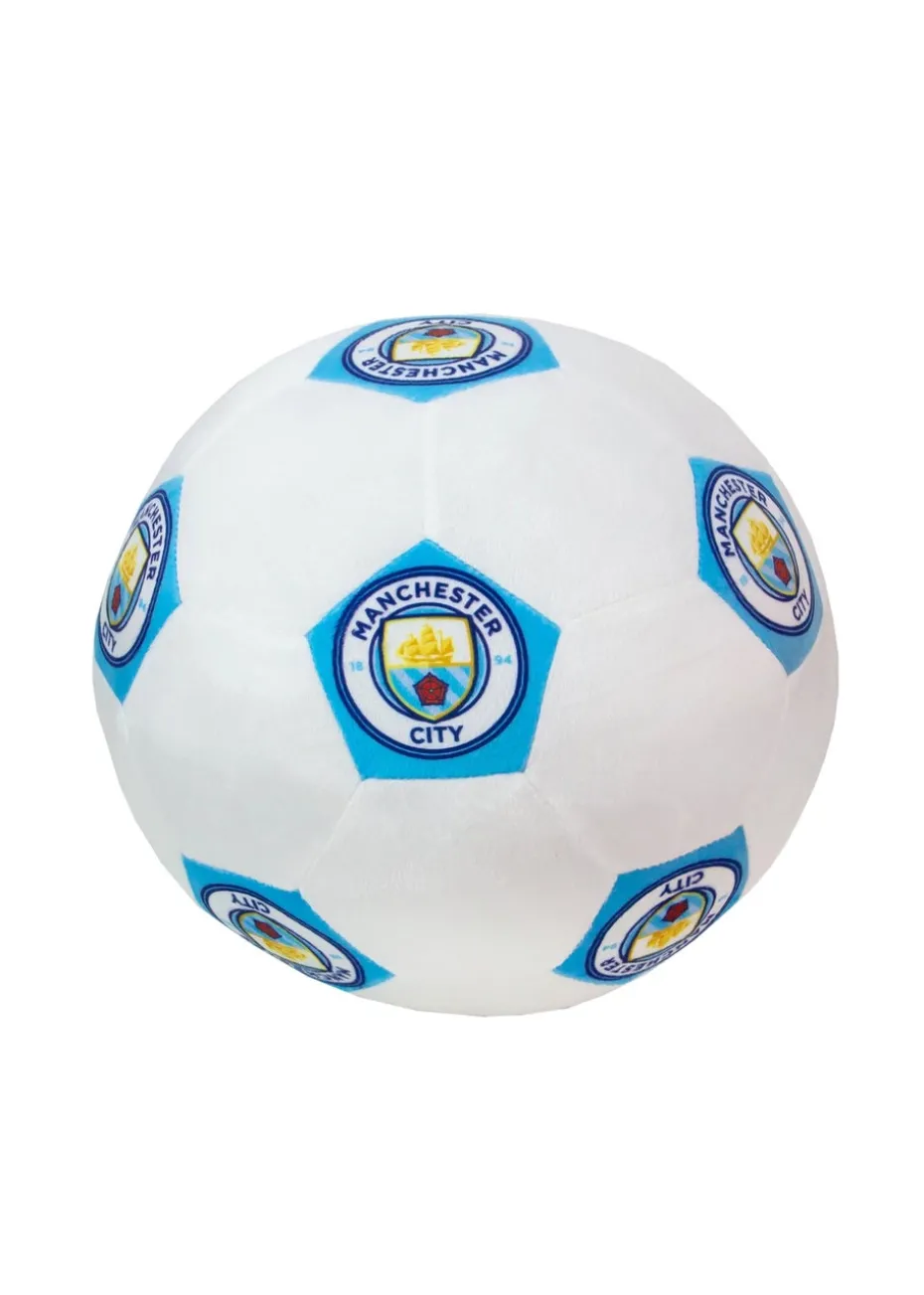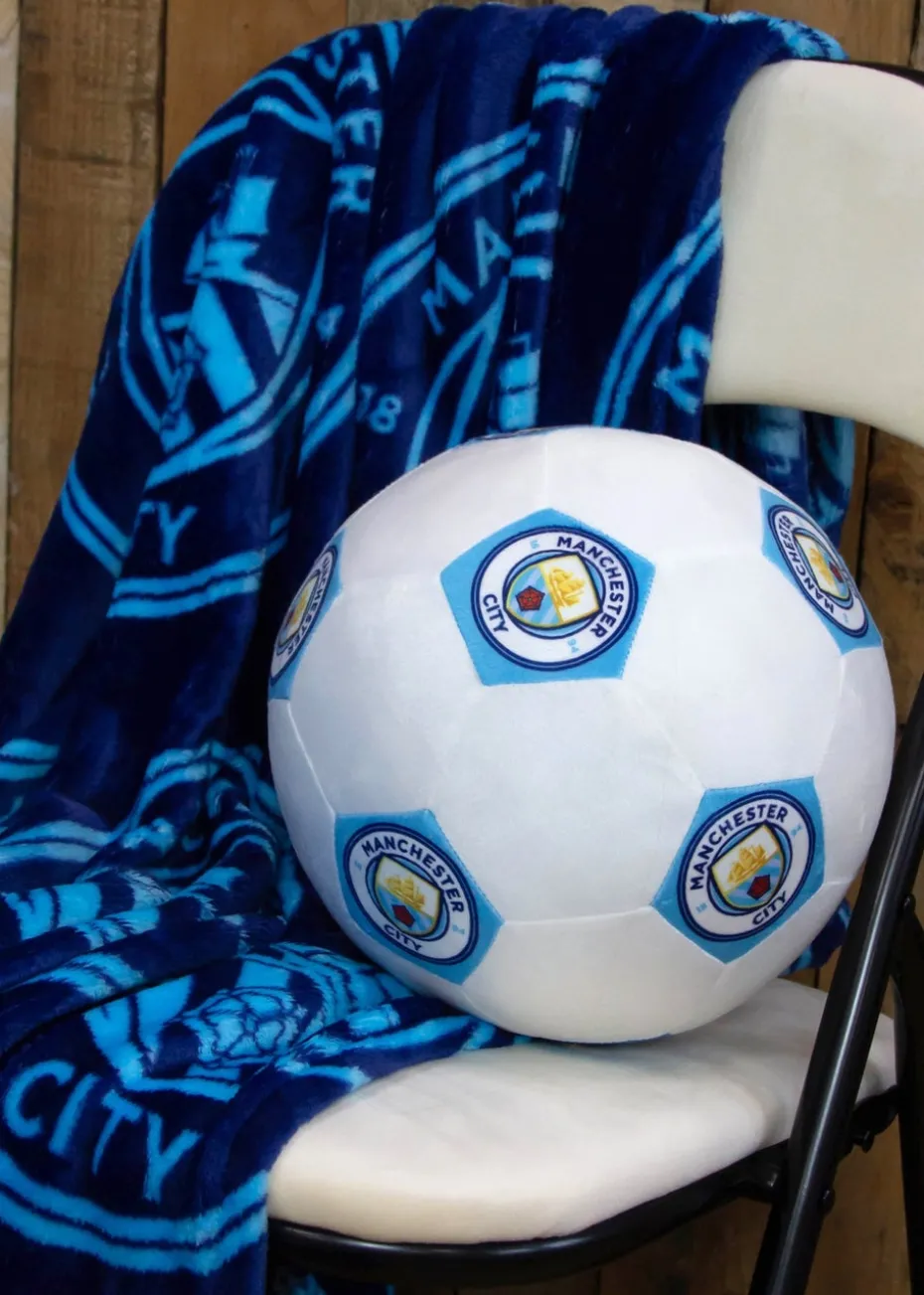 Perfect for Manchester City fans young and old, this 3D football shaped cushion has a retro inspired hexagonal patch design in white and laser blue, with the famous MCFC badge on each of the blue patches. Ideal as a Christmas gift or birthday present for the Man City fans in your life, to show your support throughout the year, or just as a cheeky gift to yourself. Great as a decorative cushion, but soft and comfortable enough that it can be used for lazing around on your bed or couch. This 3D Man City football cushion is officially licensed by Manchester City Football Club, so is made to a premium quality standard and designed to last, not fall apart during the hectic end of season run in! Measuring 25 x 25cm, and filled with 100% polyester, this football shaped cushion is easy to wipe clean with a soft damp cloth, just in case of spills or wear and tear. Part of our Official Manchester City Football Club range, that includes reversible duvet sets, towels, warming blankets, pillows, and a super comfortable fleece lined wearable Hugzee for juniors and teens.