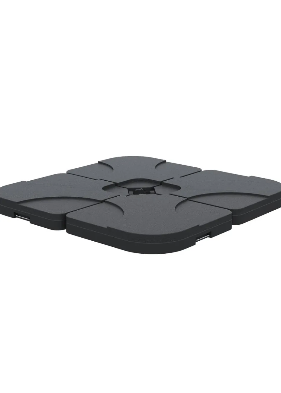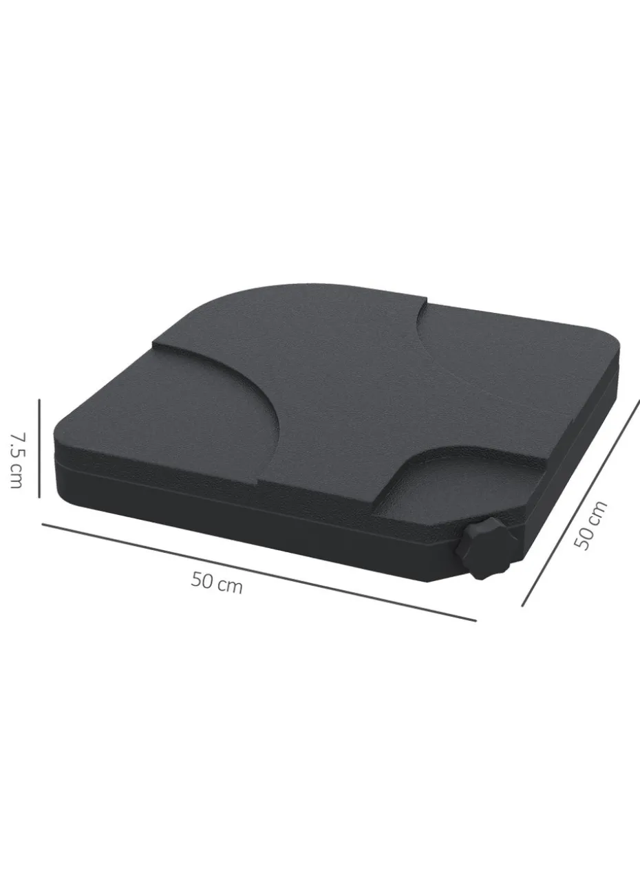 These Outsunny umbrella base weights are a great accessory to have to keep your parasol, umbrella steady. The weight comes in a four-piece configuration to be placed on the cross feet of your umbrella. Made from a high-density polyethylene material, it can withstand most weather elements. Each of the pieces can be filled with water or sand to make them heavy and more secure, and they also have handles if you need to move them. Weight base size (each piece): L 50cm x W 50cm x H 7.5cm. Each piece capacity:15L. Total capacity: 60L. Net weight: 8.7kg. Please note: Standing pole not included.