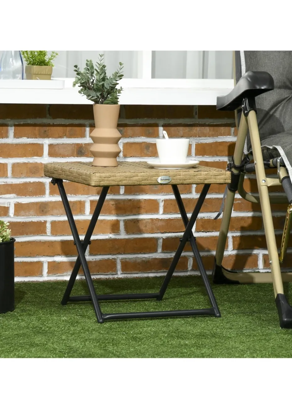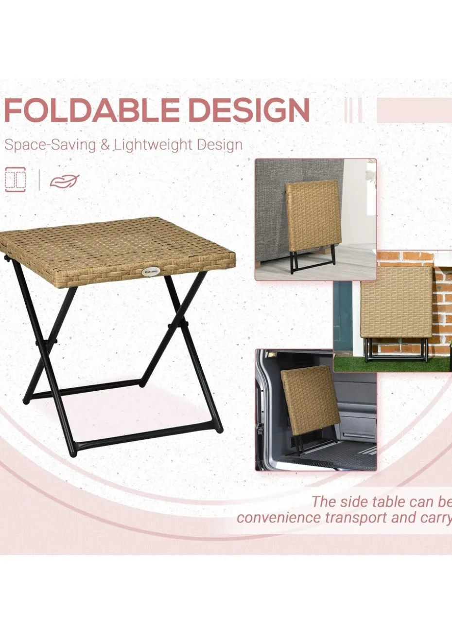 Outsunny Foldable Outdoor Coffee Table Steel Frame Rattan Side Table