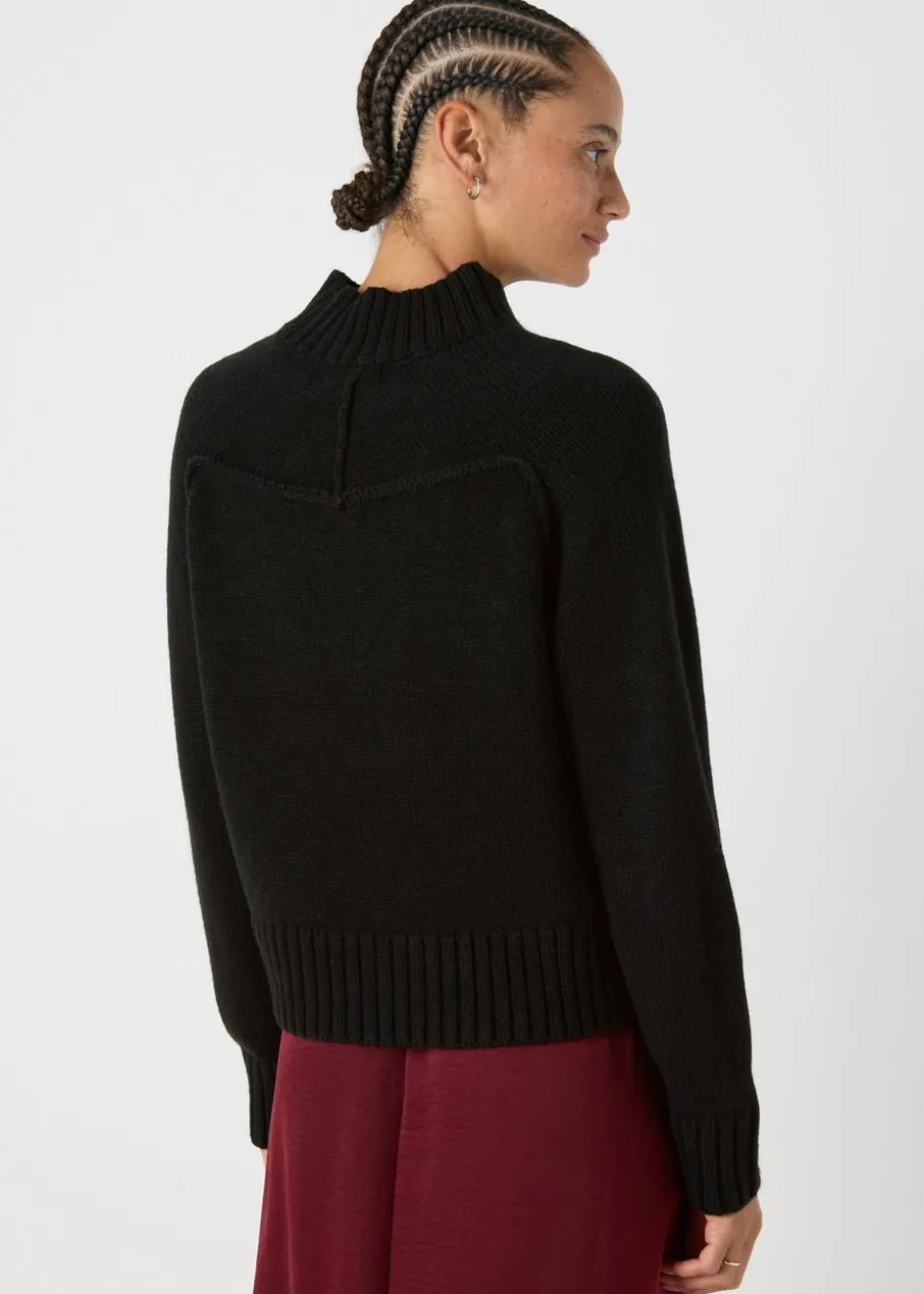An effortlessly chic Papaya Petite Black Seam Front Jumper crafted from sumptuous chunky knit black fabric, exuding timeless elegance. Featuring a seam front design for a flattering and streamlined silhouette, a ribbed high crewneck for a classic and cosy touch and long sleeves to keep you warm on chilly days. For a smart casual look, layer it over a crisp white shirt and pair it with tailored trousers and loafers or for a cosy weekend ensemble, team it with your favourite jeans, trainers and a cosy beanie hat.