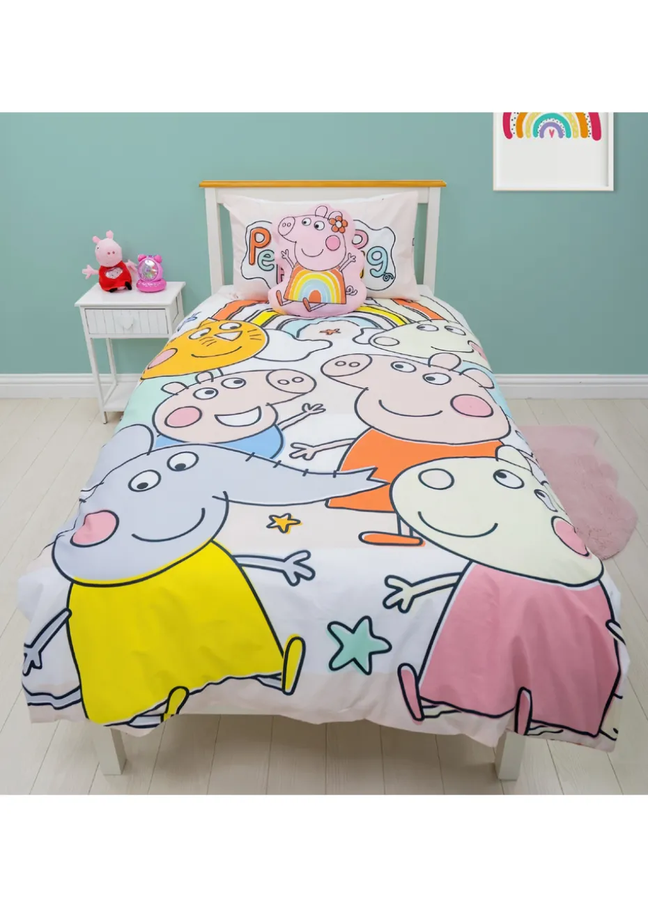 Peppa Pig and all her friends are here to make your little one rush off to bed with this officially licensed single duvet set. This pink duvet set will give our little piglet the sweetest dreams surrounded by all their favourite Peppa Pig characters.