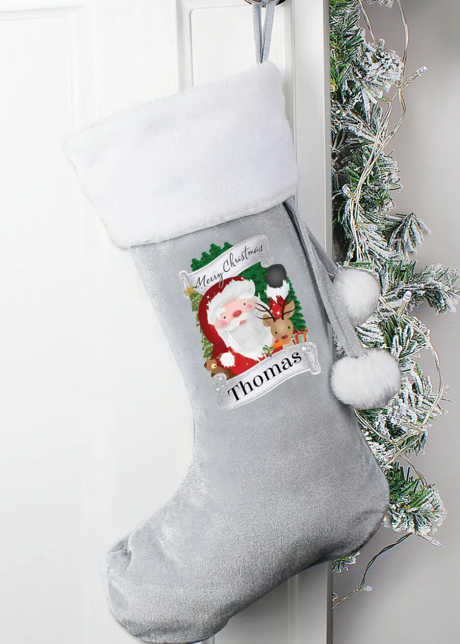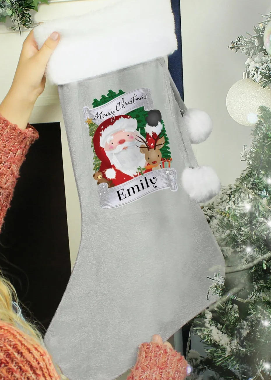 Personalised Memento Company Grey Christmas Santa Stocking