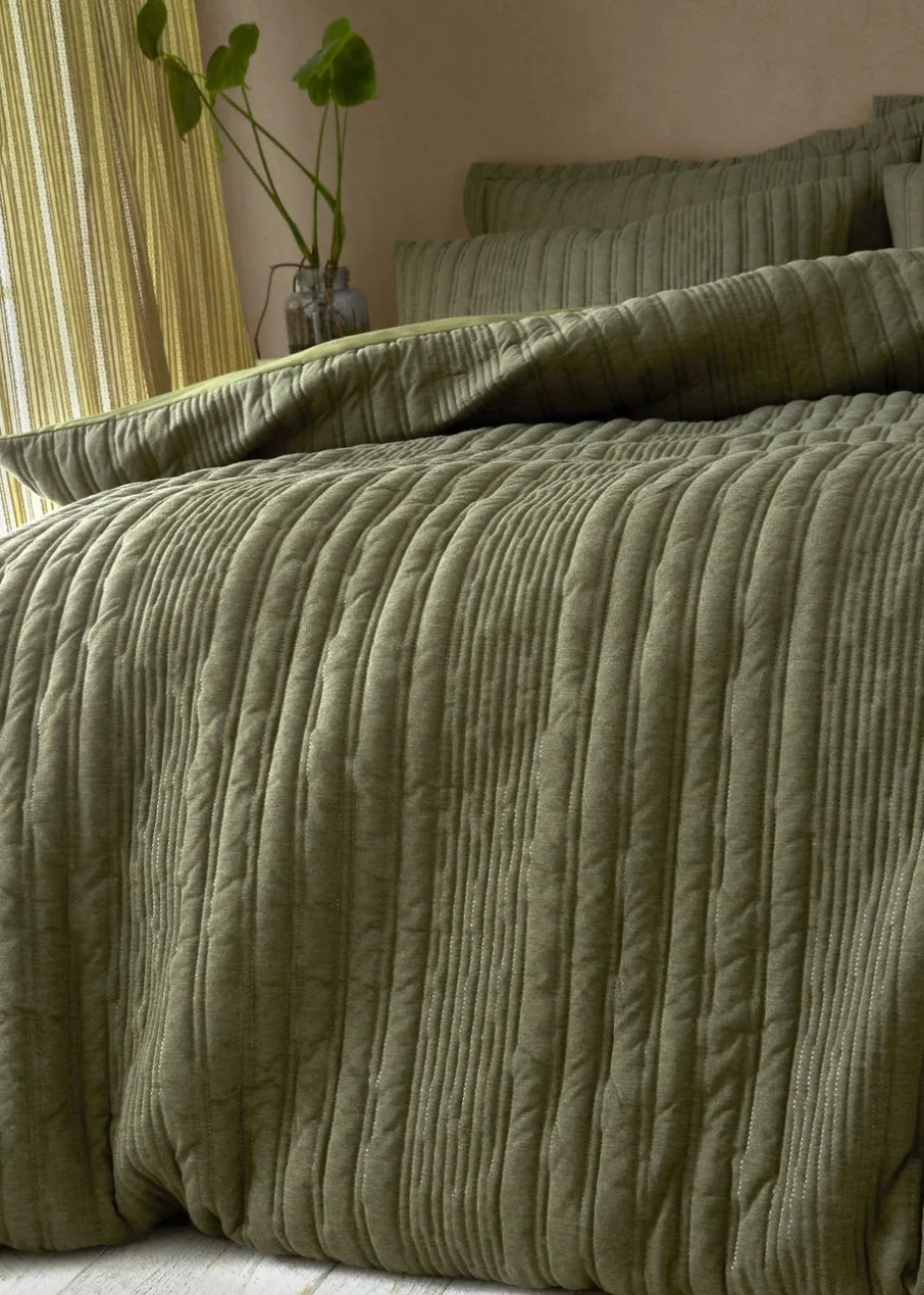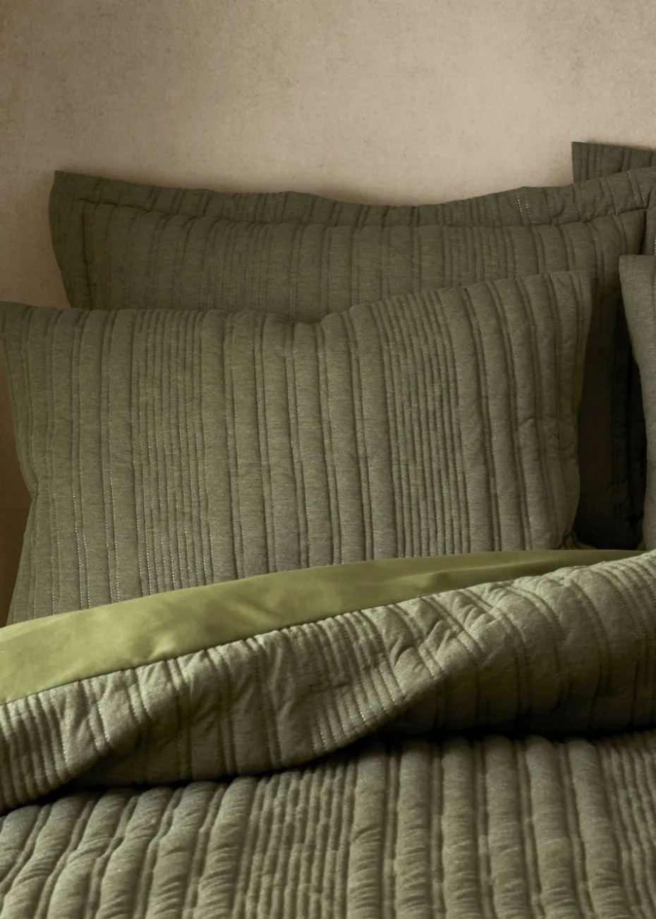 Add a relaxed comfort to your room with soft to touch Jersey. Featuring subtle linear quilting in muted natural tones for a calming bedroom retreat. This inspired collection of eclectic designs is a fusion of influences from across the world with a modern interpretation of artisan motifs and timeless textures.