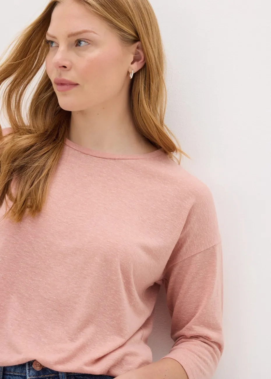 Add a pop of colour to your wardrobe with our Pink Linen Blend Top. Made from soft, breathable fabric, this versatile top offers a comfortable fit with a flattering 3/4 sleeve design. Perfect for layering or wearing on its own, it pairs easily with jeans, skirts, or leggings for a stylish and casual look.