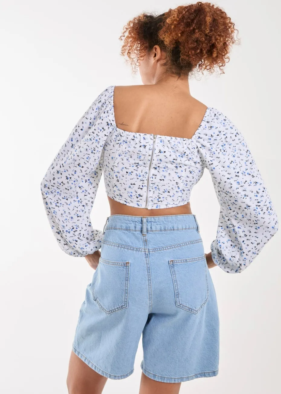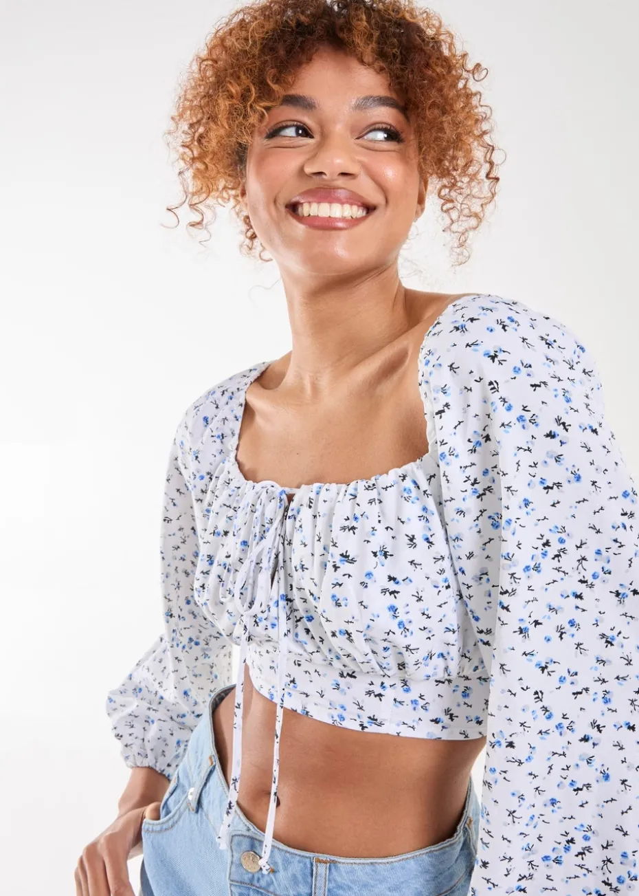 This top screams SPRING! Featuring a floral cute print, milkmaid design and cropped style, we’re sure this will be your go-to pick this year.