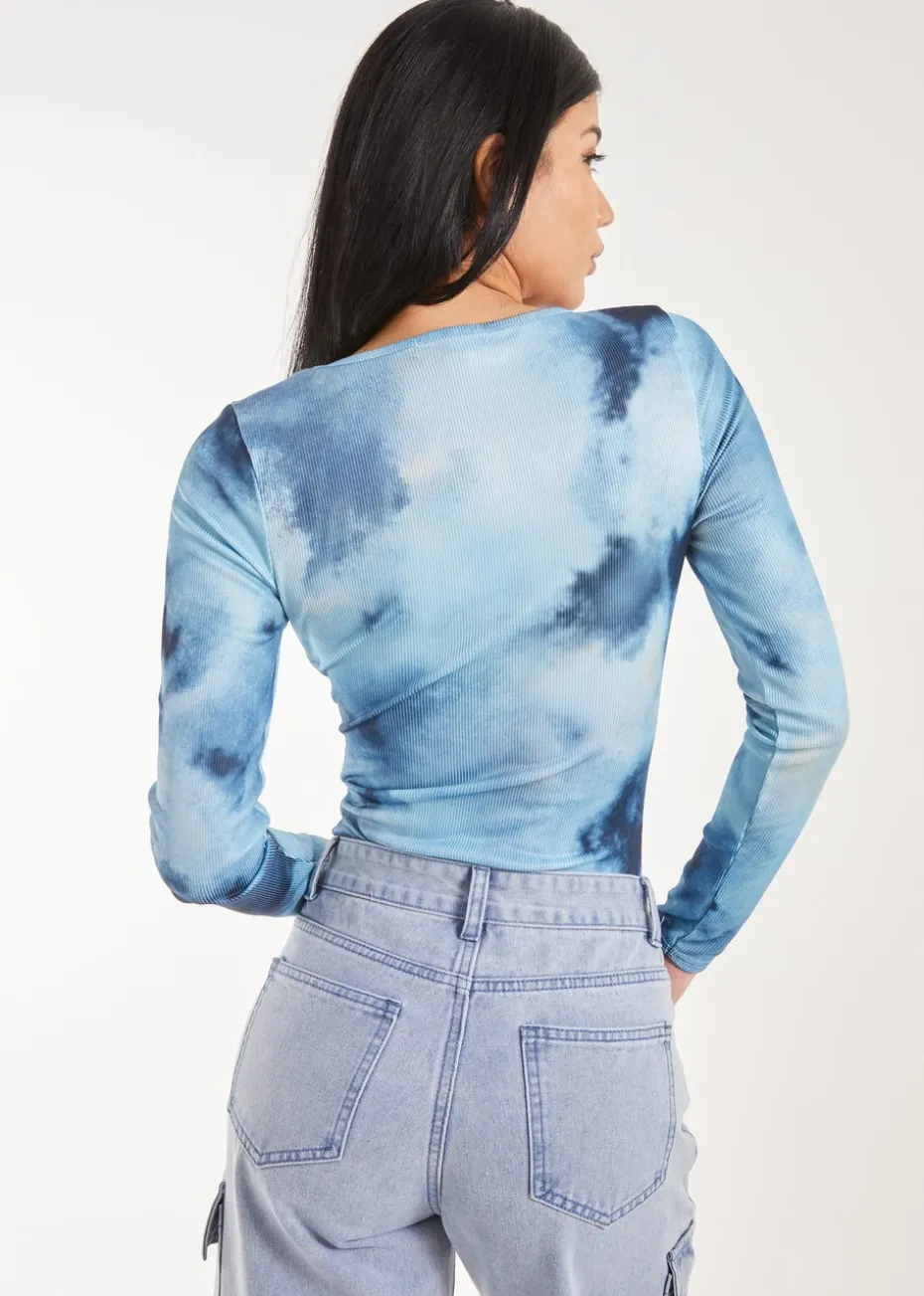 Pink Vanilla Blue Tie Dye Printed Bodysuit