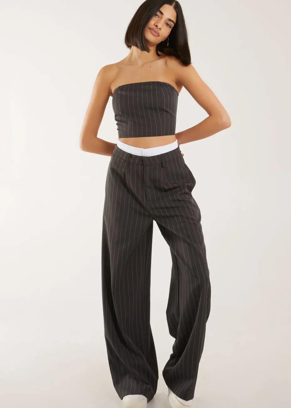 We are in love with this pinstripe set. Mix and match our Bandeau Crop Top with: Boxer Style Pinstripe Trousers or Pinstripe Cropped Waistcoat.
