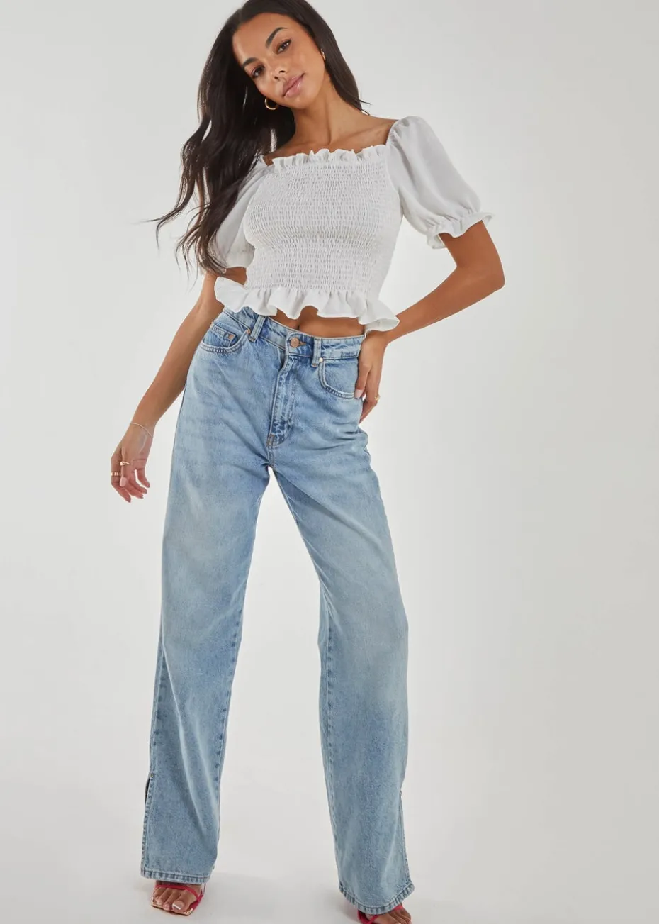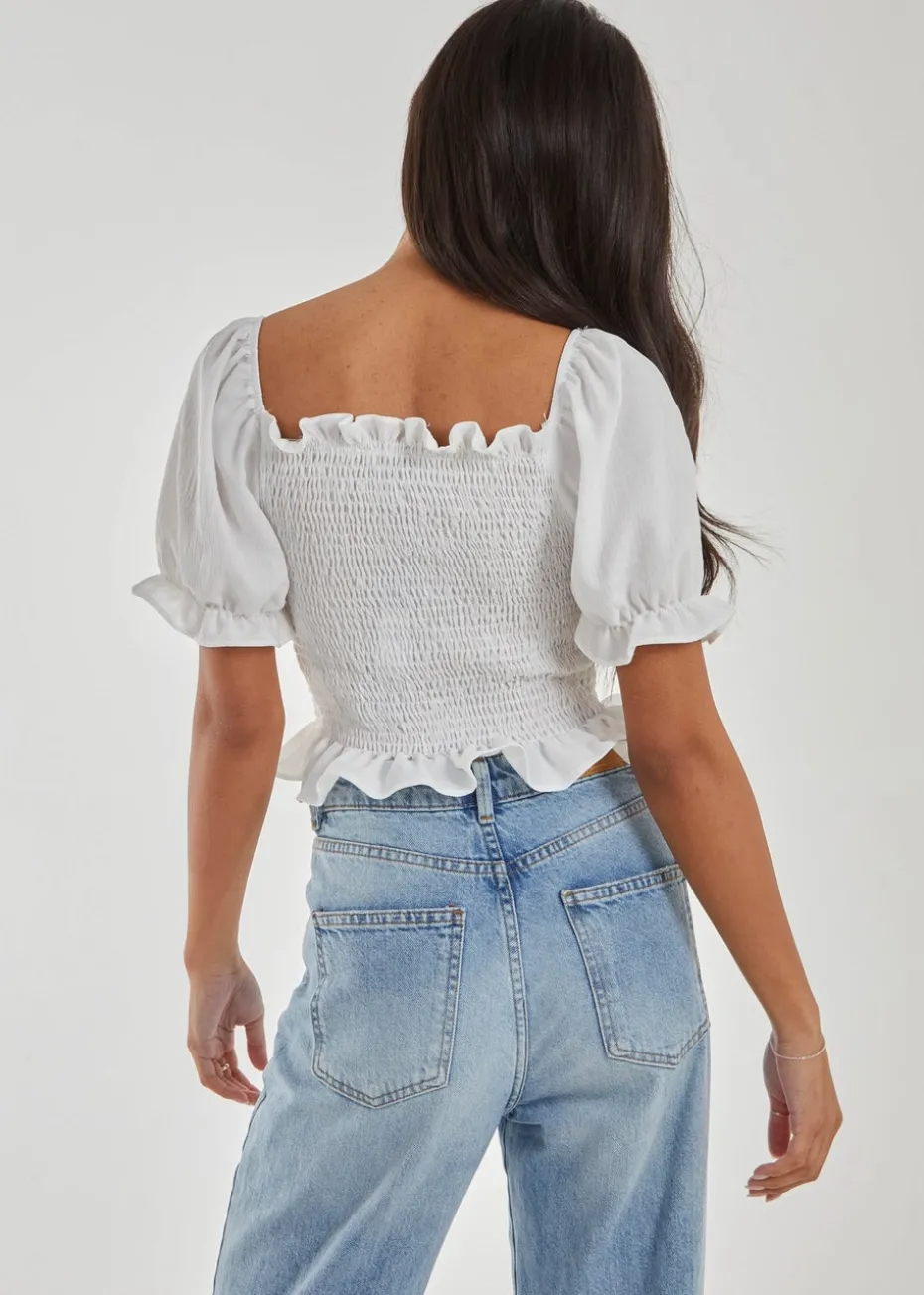 Pink Vanilla Ivory Puff Sleeve Square Neck Shirred Top