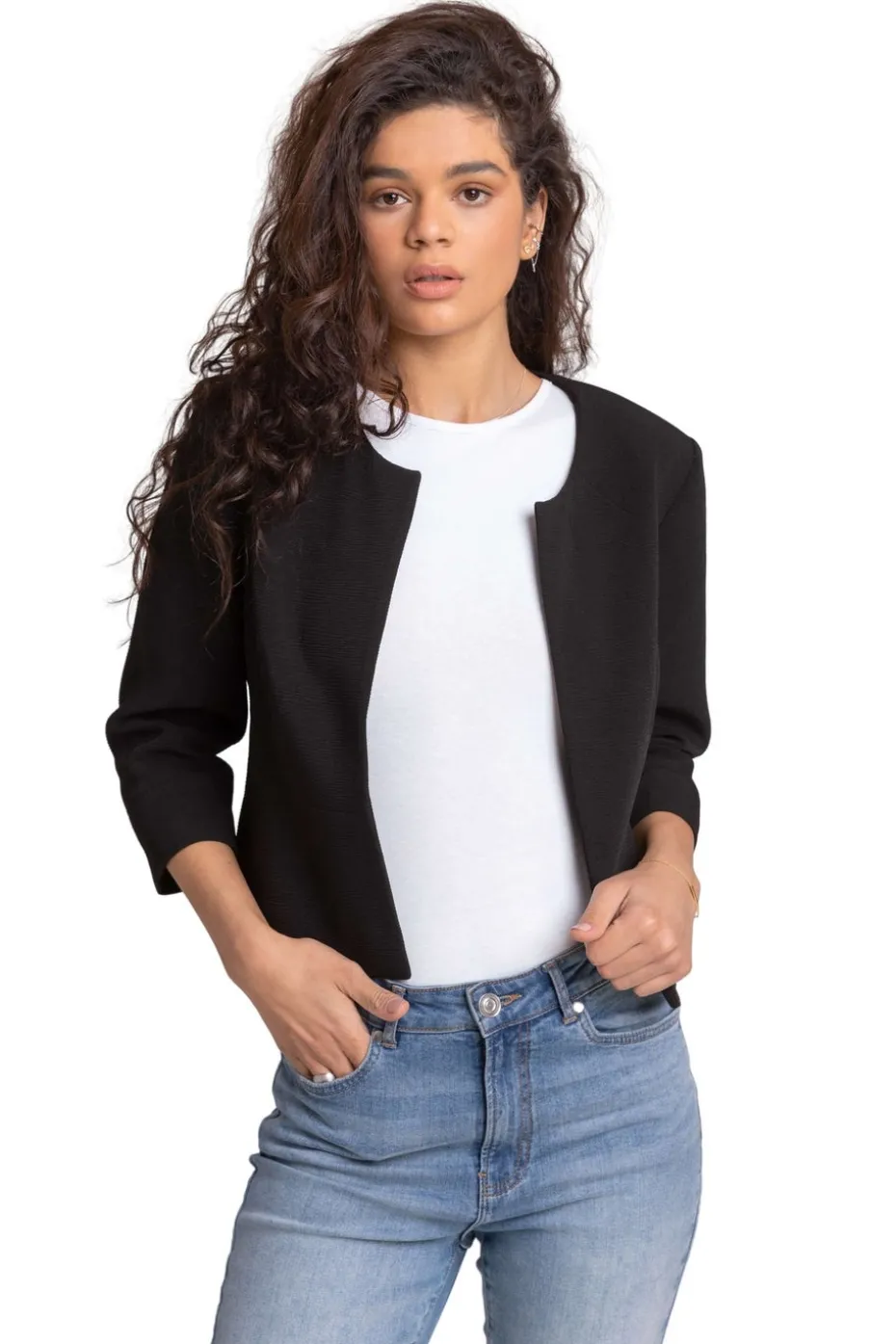 Roman Black Cropped Bolero Tailored Jaquard Jacket Wedding Shrug Fitted Blazer