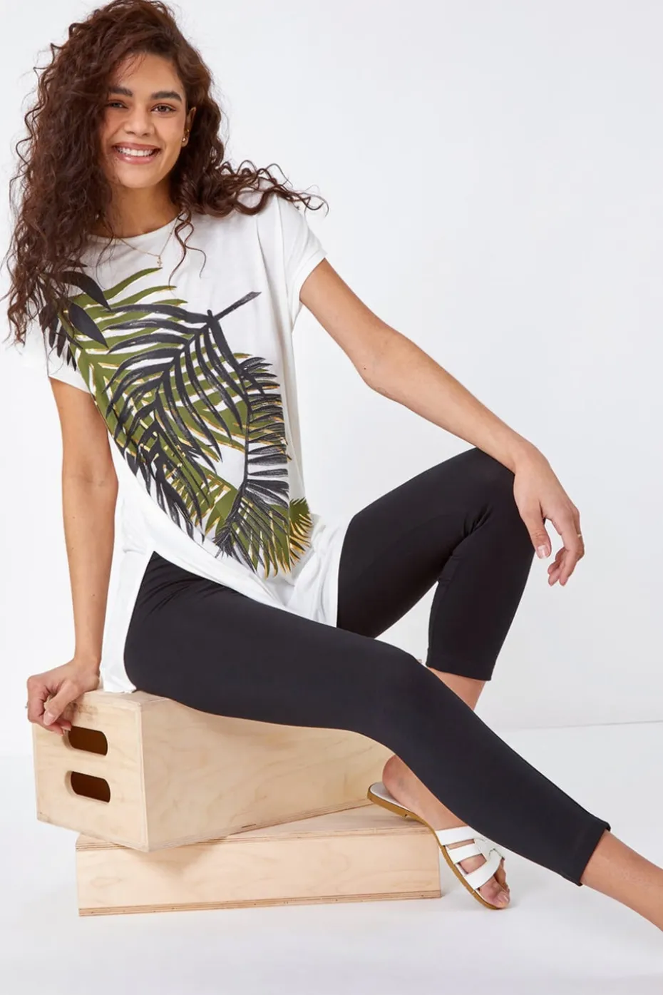 Elastic Waist Stretch Cropped Leggings from Roman. Refresh your wardrobe essentials with these lightweight cropped leggings. Made in a soft, jersey fabric, these leggings have an elasticated waistband so they are comfortable and great for everyday wear. Style casually with a t-shirt and trainers or dress it up with heels and an embellished top for a night out.