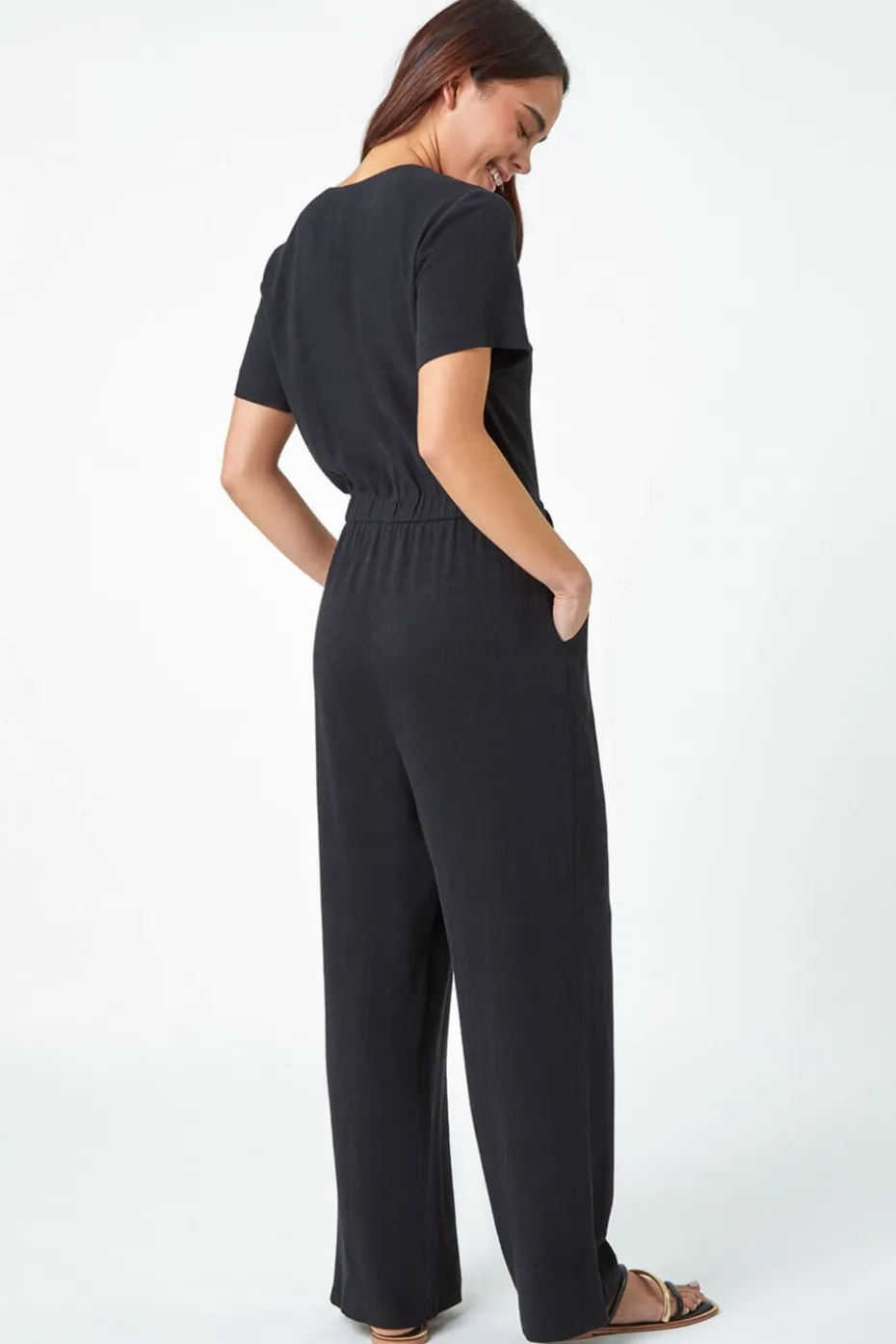 Petite Linen Blend Jumpsuit from Roman. Master chic everyday style with ease with this Petite, linen blend jumpsuit. Cut from a cool linen blend fabric, this piece features a flattering v-neckline and simple, short sleeves. It boasts sweet button detail, a self-tie fabric belt for shape and practical side pockets. Designed in a full-length style, this piece is ideal for the warmer weather ahead. Pair with sandals for a beach-to-bar look!