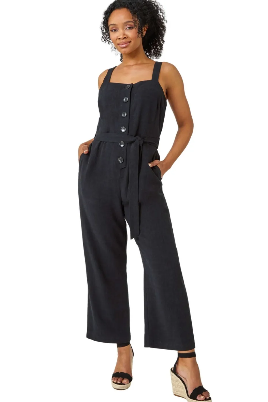 Roman Black Petite Sleeveless Linen Blend Jumpsuit
