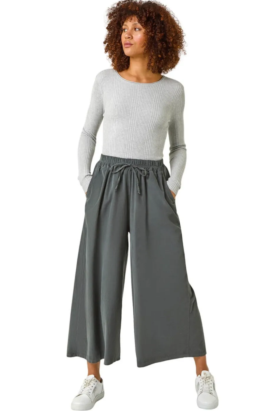 Baby Cord Wide Leg Culotte from Roman. Keep your Autumn/Winter wardrobe chic and comfortable with these wide leg culottes. Crafted from a soft baby cord fabric, these culottes feature a wide leg silhouette and a stretchy waistband for the perfect fit. Ideal for everyday wear, these culottes can be styled effortlessly with knitwear for a cosy look or dressed down with trainers for a casual vibe.