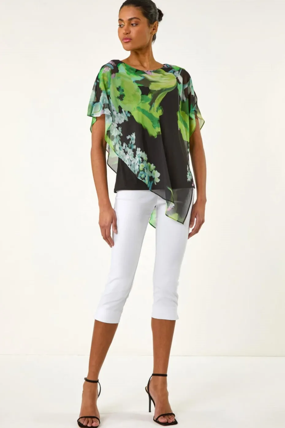 Be the first to review “Roman Green Floral Print Asymmetric Overlay Top” Cancel reply