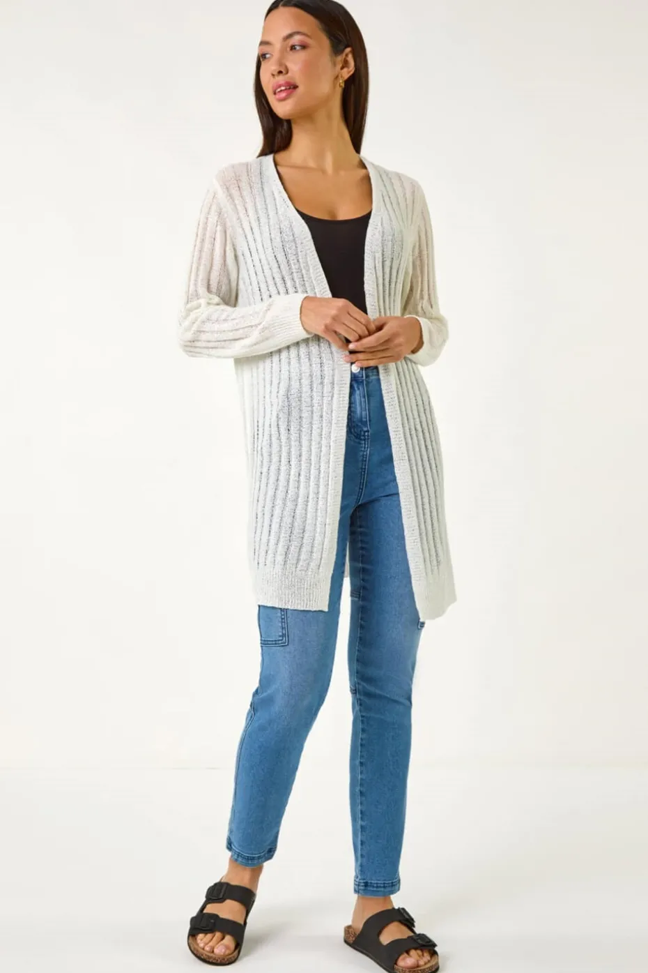 Longline Lightweight Knit Cardigan from Roman. Elevate your Spring Summer wardrobe with this trendy longline knit cardigan. Effortlessly stylish, this longline cardigan features a comfortable fit and practical long sleeves. Perfect for layering over a cami top and jeans for a casual yet trendy look that will take you from day to night seamlessly!